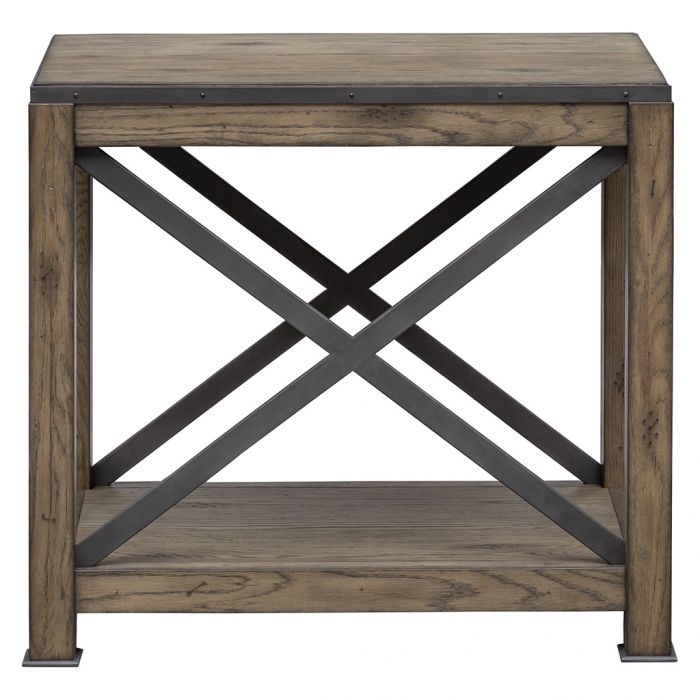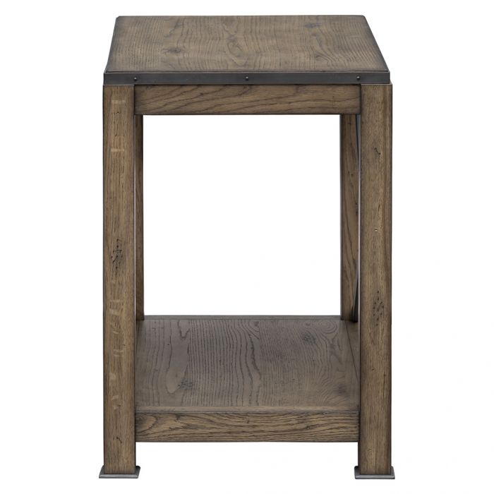 Product Description: Fairfield 8063-95 Arcadian Rectangular End Table - Reflecting the characteristics of rural architecture and pastoral charm, Arcadian is a collection of occasional, dining, and home office pieces. Embracing the allure of imperfection, the pieces feature a heavily-distressed patina of scratches, knots and nicks in a natural, Burnished Oak finish.