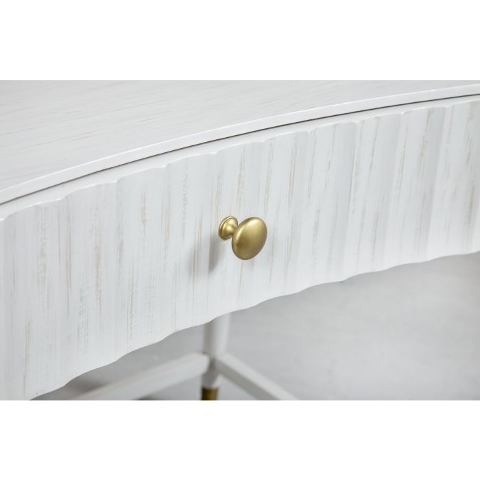 Product Description: Fairfield 8098-08 East Camden Vanity Desk - The epitome of casual elegance, East Camden is an elevated mix of casual textures and luxe accents. Dimensional wood-carved detailing and a textured Pearl finish is balanced against luxe, Carrara marble surfaces and Antique Brass metal accents.