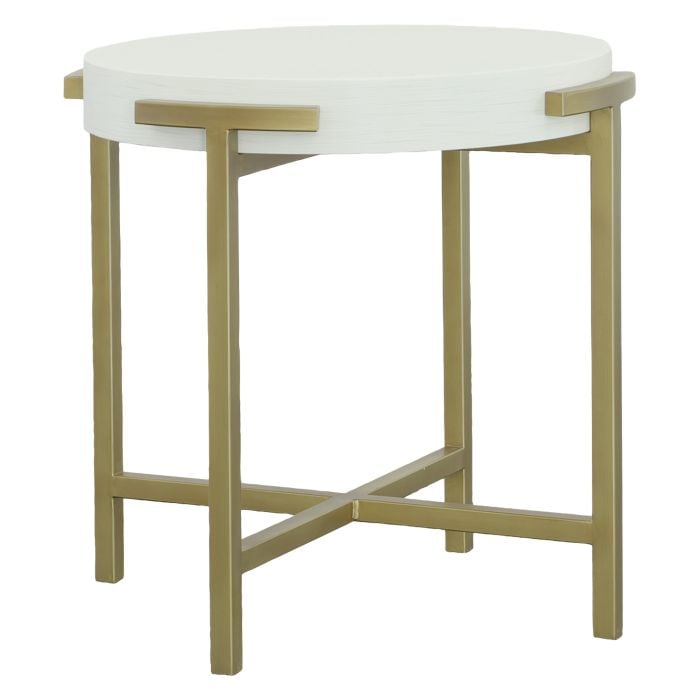 Product Description: Fairfield 8098-19 East Camden Round End Table - The epitome of casual elegance, East Camden is an elevated mix of casual textures and luxe accents. Dimensional wood-carved detailing and a textured Pearl finish is balanced against luxe, Carrara marble surfaces and Antique Brass metal accents.