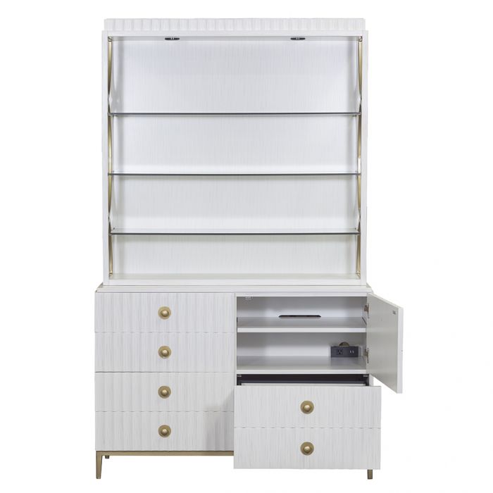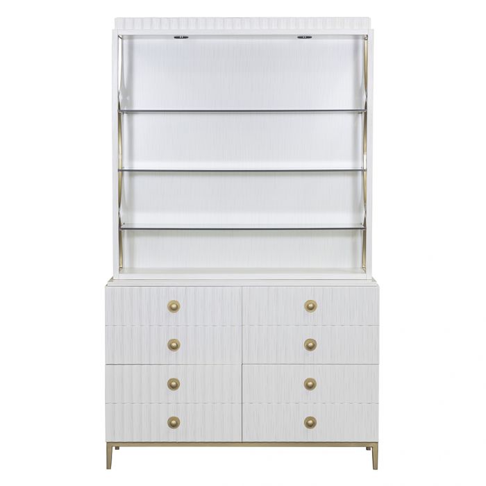 Product Description: Fairfield 8098-83 East Camden Deck - The epitome of casual elegance, East Camden is an elevated mix of casual textures and luxe accents. Dimensional wood-carved detailing and a textured Pearl finish is balanced against luxe, Carrara marble surfaces and Antique Brass metal accents.