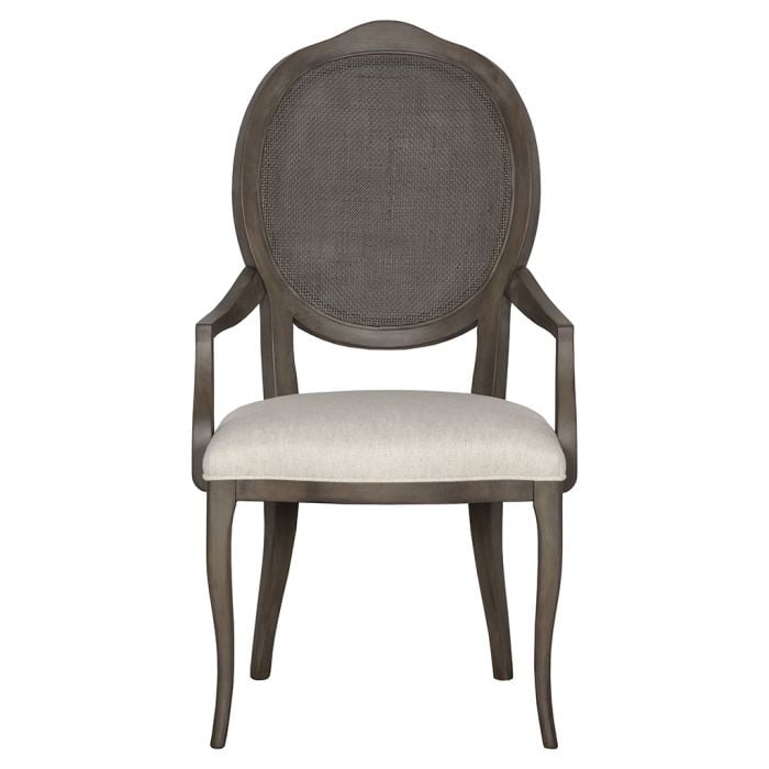 Product Description: Fairfield F842-04 Ava Arm Chair - Married in Fabric 8796 Alabaster with Almond Buff finish. Features natural cane accents that was handwoven using the peel of natural rattan. As with any natural product, nature's imperfections and hallmarks will be present in the cane materials. Cane is a handcrafted product with artisanal origins dating back to the Ancient Egyptians. Standard two packed per box.