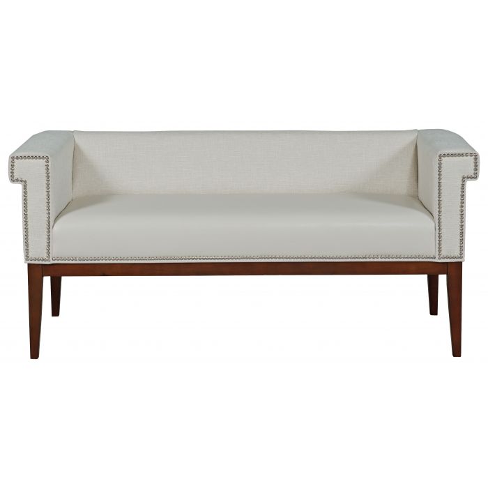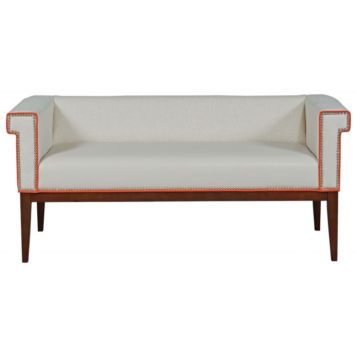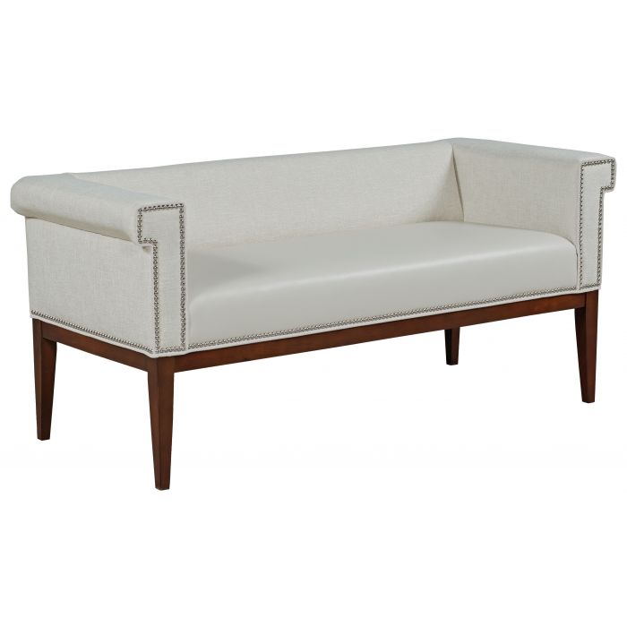 Product Description: Fairfield L-1742-10 Evie Bench - This bench features contemporary detailing. The arms have angular fronts accented with welting. The tight seat is framed with exposed wood and the tall slim legs are tapered.