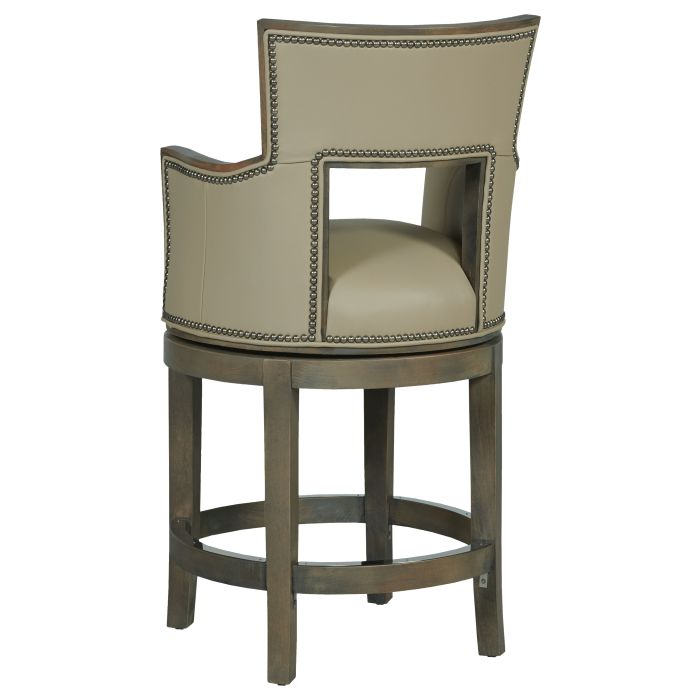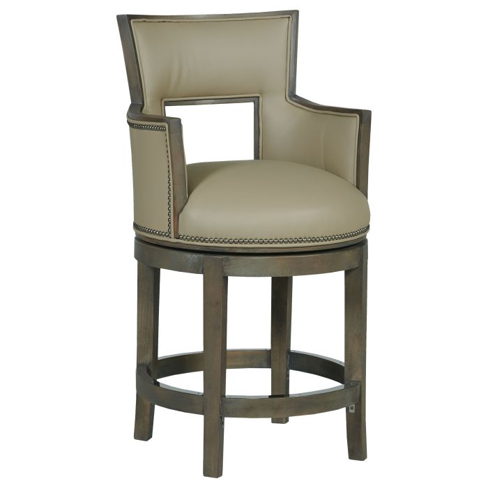 Product Description: Fairfield L-2003-C6 Sidecar Counter Stool - Crafted from solid oak wood with a sleek metal footrest. Upholstered in premium leather for a luxurious feel. Features a swivel seat for added convenience. Ideal for kitchen islands or home bars.