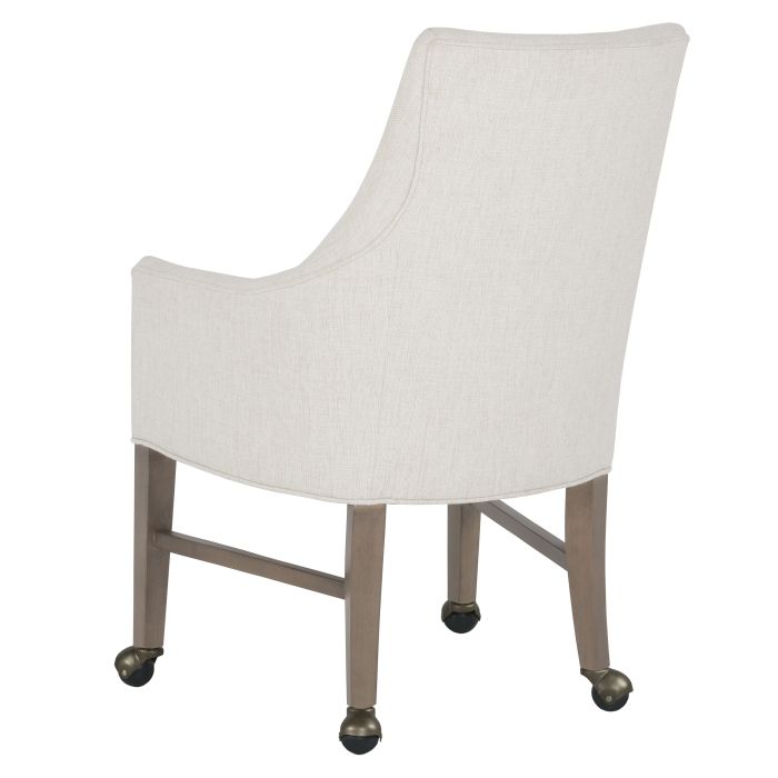 Product Description: Fairfield L-6038-A4 Dena Arm Chair, Leather, with four casters - Dena features a tall backrest that provides ample support and comfort for extended sitting. The rounded shape of the back adds an elegant and inviting touch to the chair's design. The gentle arm curve offers a stylish and ergonomic feature, allowing for a comfortable resting position. This chair combines both functionality and aesthetic appeal, making it a perfect choice for a dining setting.
