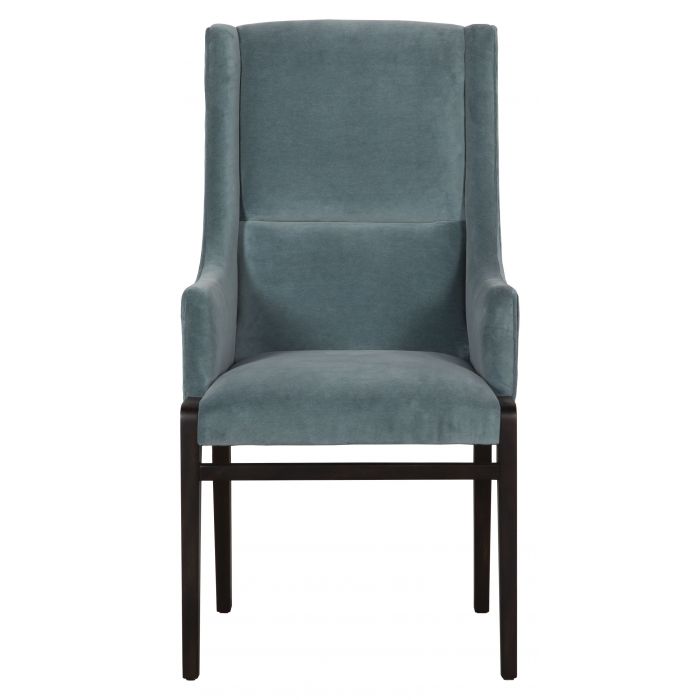 Product Description: Fairfield L-6451-04 Libby Langdon Briarcroft Arm Chair - Using fantastic joinery techniques, skilled Fairfield craftsmen expertly fit sections of wood and upholstered seat and back sections to create the Boyd's dining chairs modern curves. This chair embraces a barrel back that flows into armrests and the angled legs from the armrest to the back of the chair offer a geometric angle that feels fresh and stylish. The slim, padded seat perfectly mimics the frame's circular profile and is neatly upholstered but so very comfortable.