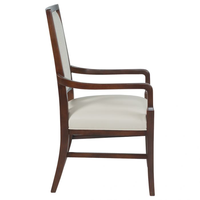 Product Description: Fairfield L-8810-04 Walsh Arm Chair - Crafted from solid wood with a curved backrest and armrests for ergonomic support. Upholstered in stain-resistant fabric for easy maintenance. Perfect for formal dining settings or home offices.