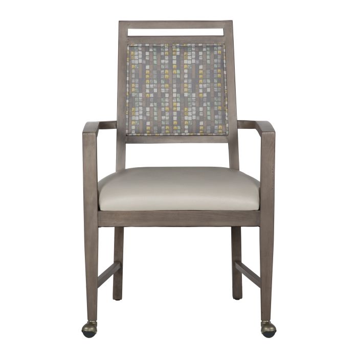 Product Description: Fairfield L-8839-A2 Littleton Arm Chair - Upholstered in plush velvet with a channel-tufted backrest for a touch of elegance. Metal legs provide stability and a modern flair. Perfect for upscale dining settings or lounges.