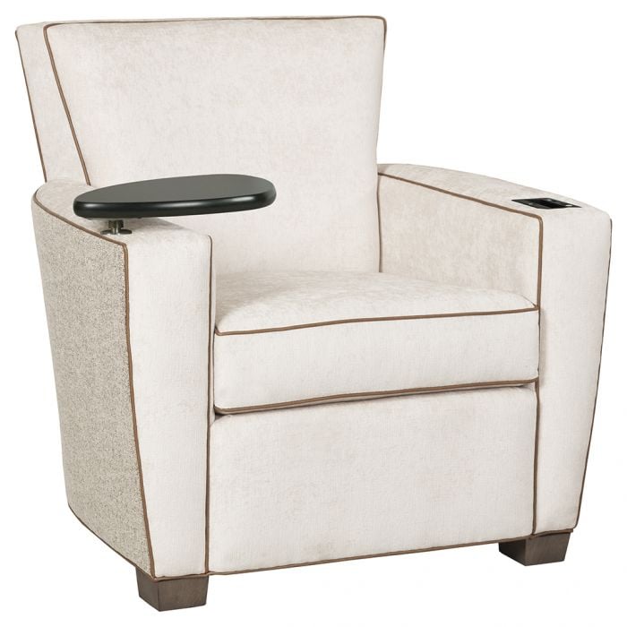 Product Description: Fairfield S-7454-T1 Payton Lounge Chair with Tablet, UV-C - The electronic UV-C system is a form of ultraviolet light with germicidal wavelengths, and is capable of killing 99% of bacteria, viruses and other pathogens. The simple press of a button radiates the ultraviolet light, cleaning high-touch surfaces such as mobile phones, and automatically concludes disinfecting after five minutes. The device also comes equipped with a USB port and wireless charging options for both iPhone and Android devices.