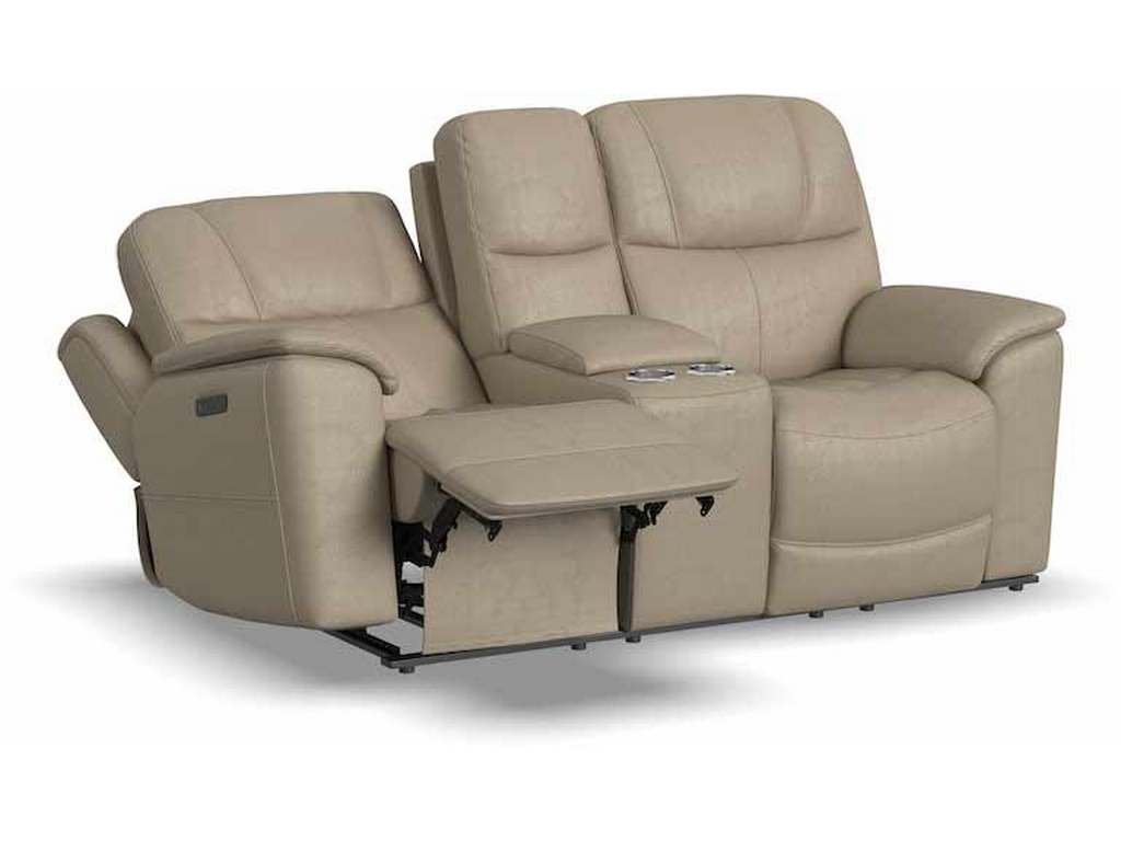 Product Description: Flexsteel 1783-64PH Crew Power Reclining Loveseat with Console and Power Headrests and Lumbar - Superior ergonomics combine with the plush comfort of the Crew power reclining loveseat with console. Featuring triple power functionality that allows for independent adjustment of the headrests, lumbar supports and recline, this loveseat also features Zero Gravity which reduces pressure and tension on the body. Enjoy reliable comfort all day, every day, with pad-over armrests, waterfall chaise footrests, thin layered headrests, and divided back cushions. Built-in USB ports conveniently charge mobile devices while a center storage console keeps remotes and beverages nearby so you can settle in for a marathon movie night. Available in two color choices, the Crew power reclining loveseat with console is upholstered in top grain leather for exceptional beauty and durability.