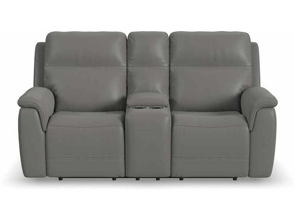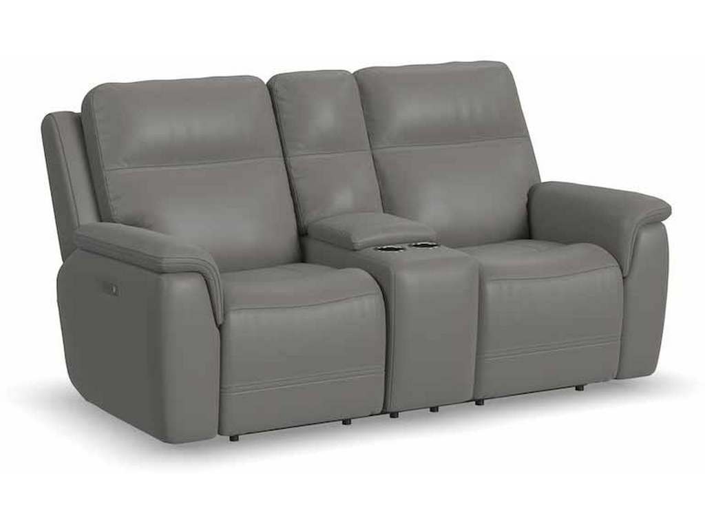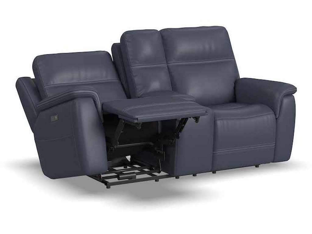 Product Description: Flexsteel 1845-64PH Sawyer Power Reclining Loveseat with Console and Power Headrests and Lumbar - Enjoy a cozy night in with the Sawyer Loveseat with Console and Power Headrests and Lumbar. Designed to make relaxation a breeze, this ergonomic loveseat has a storage console with beverage holders and plenty of space to keep remotes and personal items within reach. When you're ready to lean back, experience the feeling of weightlessness with our Zero Gravity technology, which relieves pressure on your body. Using the power control located on each arm, you can independently adjust the recline, headrests and lumbar. Both people sitting can find the perfect position to relax while watching TV or having a conversation. And with USB charging ports built into the power controls, you won't have to worry about keeping devices powered up. Additional ergonomic enhancements include a contoured seat with waterfall chaise and pad-over arms that relieve tension in your forearms. Cross-stitching on the arms and back has a refined look and enhances durability. Our patented Flexsteel DualFlex Spring System™ offers a mix of firmness and flexibility as you sit and ensures comfort for years to come. Choose from two leather upholstery options to create a look that blends with your home decor.