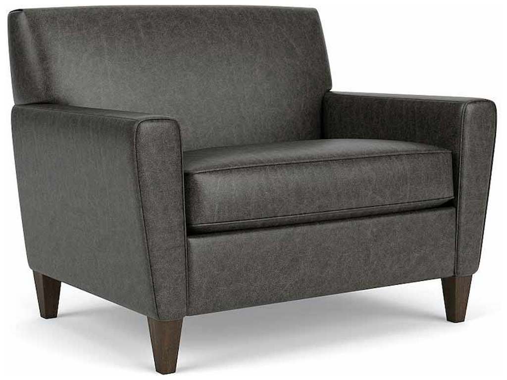Product Description: Flexsteel 3966-101 Digby Chair and a Half - Slim tapered arms and a tightly padded back make Digby feel roomy even in smaller areas. Its exclamation-point arm is finished with a tall tapered leg to add visual height, and the tight back enhances the architectural feel of this style while offering surprising comfort.
