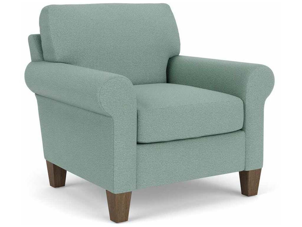 Product Description: Flexsteel 5037-10 Moxy Chair - The Moxy chair ensures you never have to settle for anything other than the perfect design, no matter your style. A classic silhouette with casual, curved sock arms sits on square tapered legs that are available in three distinct wood finishes-Florentine, Valencia, or Urban Renewal-to complement any decor. The removable square, inside seat cushion style offers you the flexibility to rotate for added longevity. Sink into the ideal level of support with your choice of our luxury or plush cushion. Complete the look and showcase your lifestyle with hundreds of different fabric choices, including high-performance and sustainable textiles. Superior frame construction and our patented C-Flex Blue Steel Spring™ ensures your Moxy can be enjoyed for years to come.