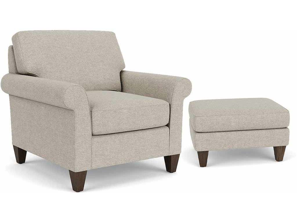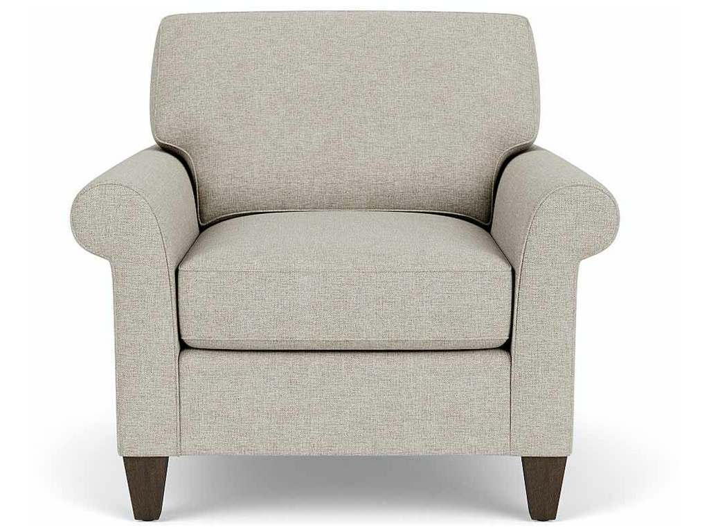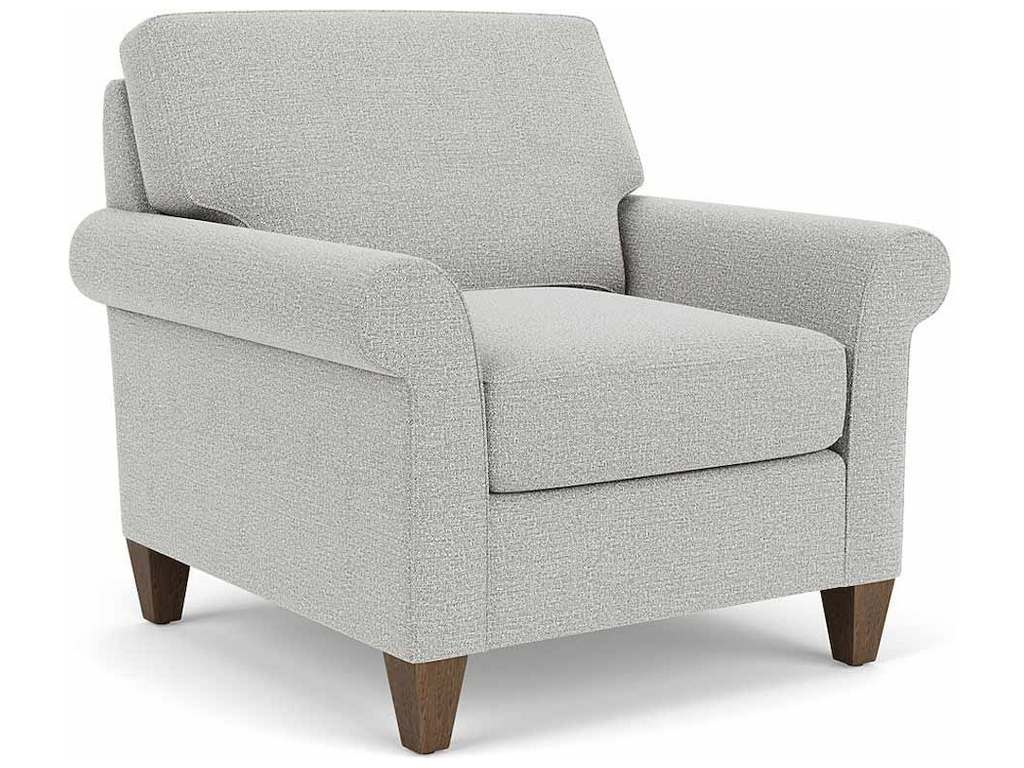 Product Description: Flexsteel 5979-10 Westside Chair - Lean back and look sophisticated in this Westside classic. Rolled arms and tapered wooden legs elevate an angled profile so you can sit back and relax elegantly. Soft boxed seat and back cushions paired with quality construction provide years of comfortable seating for you and your family.