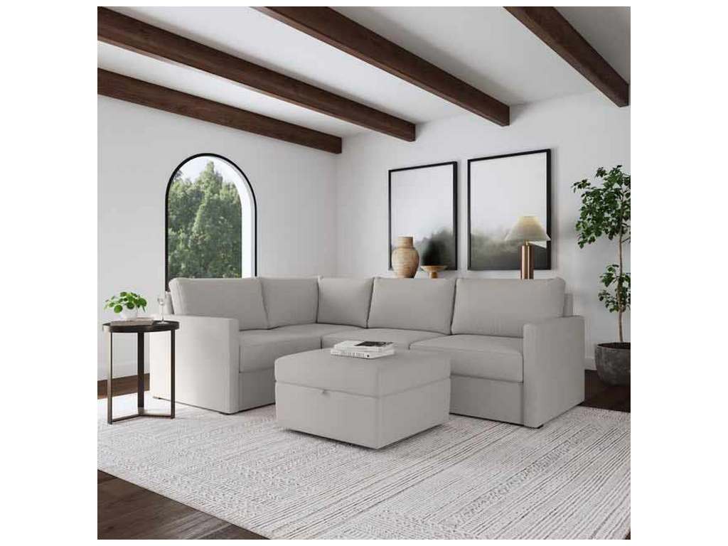 Flexsteel 90224NSECS31301 Flex 4 Seat Sectional with Narrow Arm and Storage Ottoman Frost