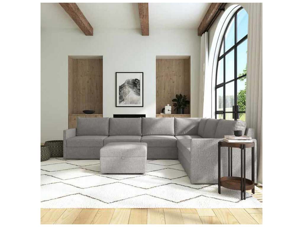 Flexsteel 90226NSECS31302 Flex 6 Seat Sectional with Narrow Arm and Storage Ottoman Pebble