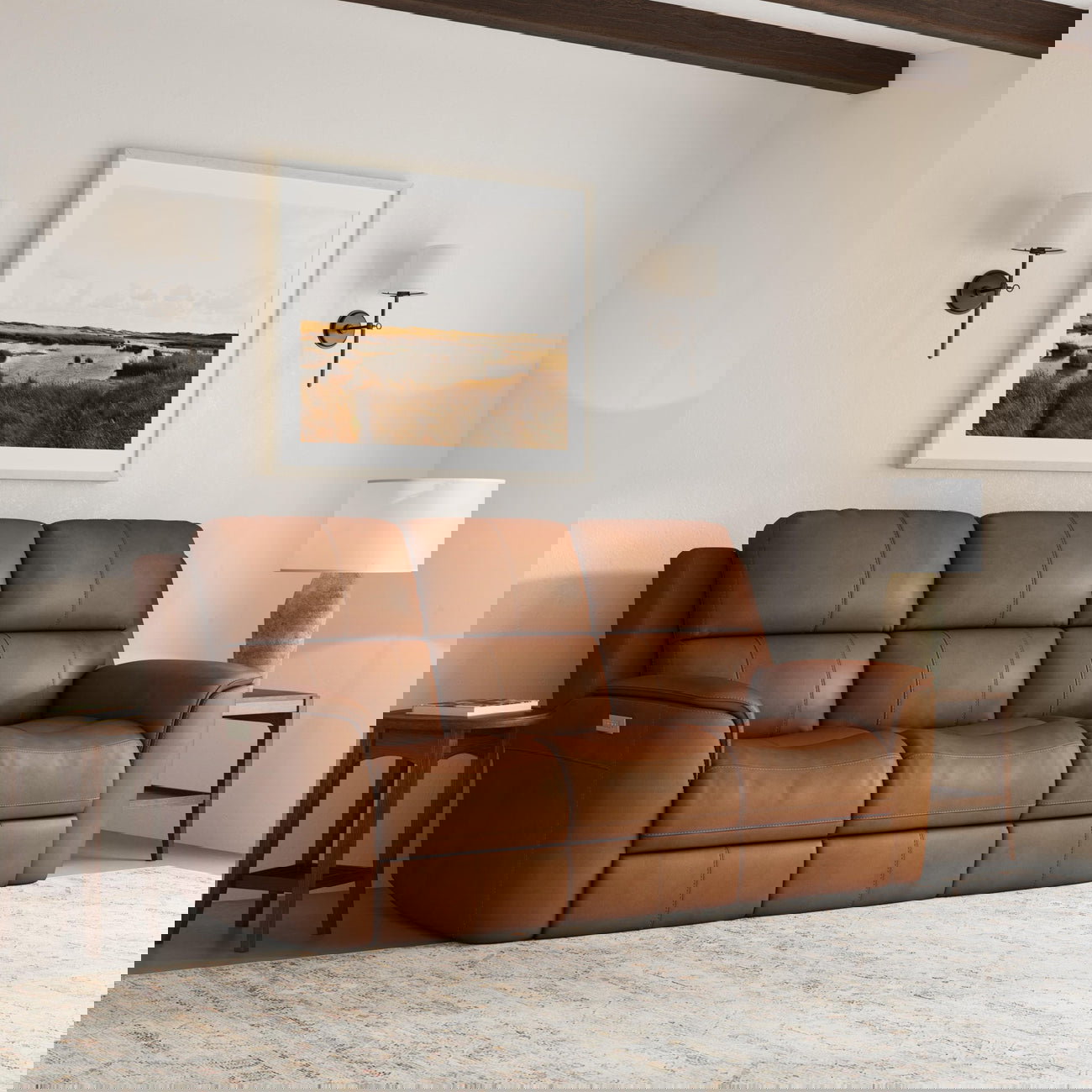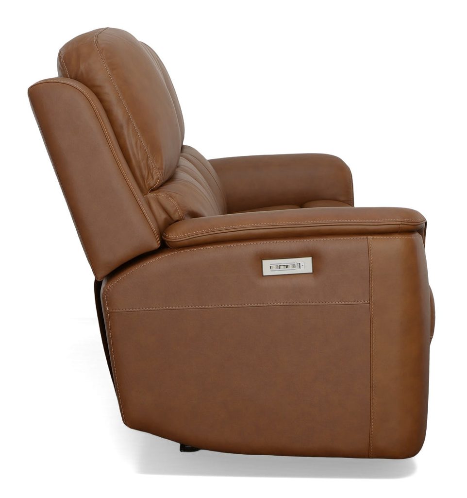 Product Description: Flexsteel 1041-62PH-94672 Henry Caramel Leather Power Reclining Sofa with Power Headrests and Lumbar - Experience comfort and sophistication with the Henry leather power reclining sofa, designed with adjustable power headrests and lumbar support. The spacious frame is upholstered in rich caramel brown leather and features contoured seats and padded arms with a distinctive sculptural shape accented by welt trim. Power controls on each end seat allow you to adjust the recline, headrest, and lumbar for personalized comfort, while built-in USB ports make charging devices easy. Zero Gravity reclining technology creates a weightless sensation, and Flexsteel’s patented Blue Steel Spring system delivers durable, long-lasting seat support.
