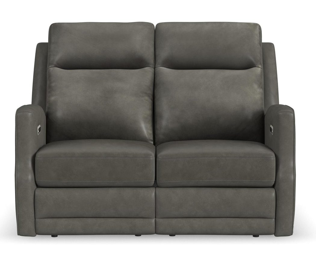 Flexsteel 1585-60PH-72702 Maxwell Cinder Leather Power Reclining Loveseat with Power Headrests and Lumbar