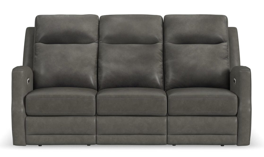 Flexsteel 1585-62PH-72702 Maxwell Cinder Leather Power Reclining Sofa with Power Headrests and Lumbar