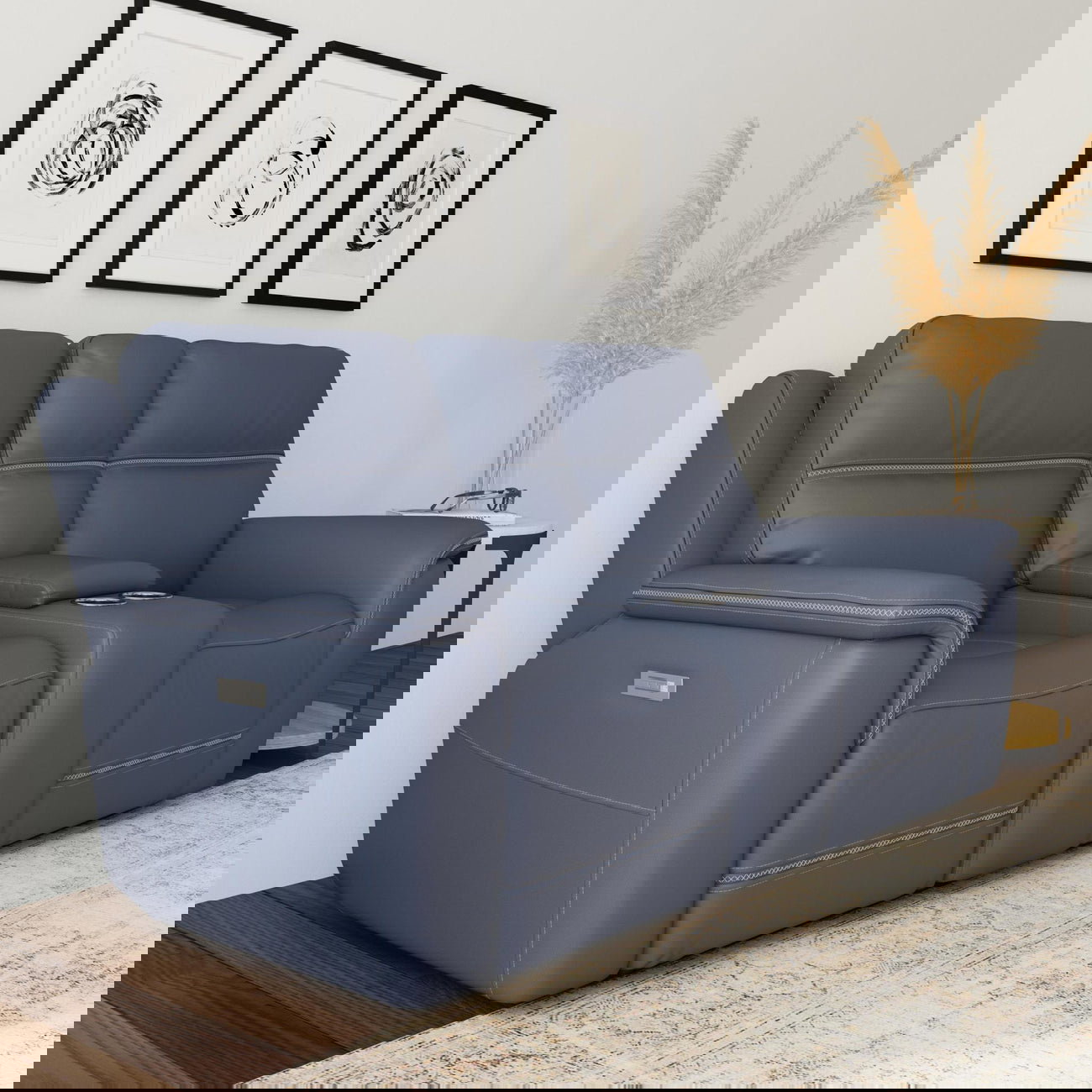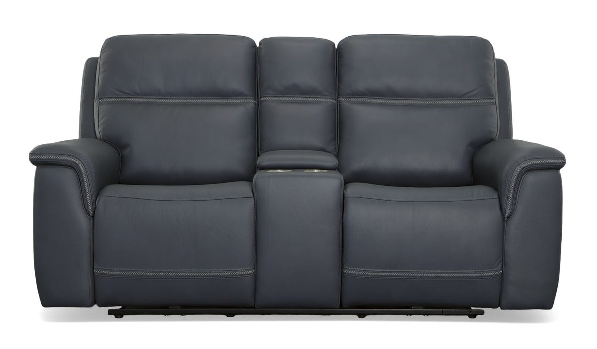 Flexsteel 1845-64PH-00942 Sawyer Marine Leather Pwr Recl Loveseat with Console, Power Headrests and Lumbar