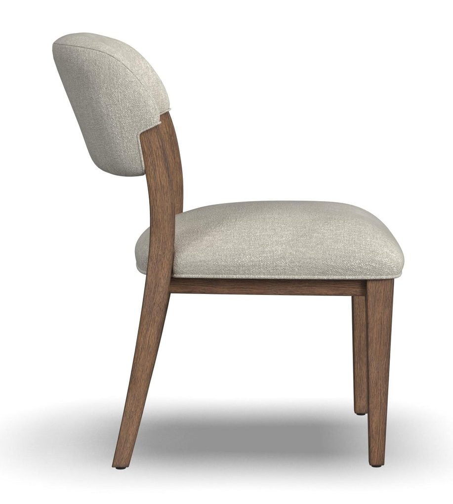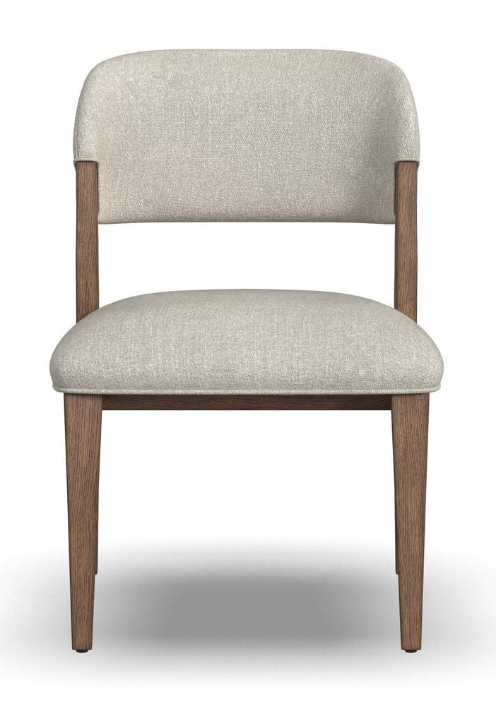 Product Description: Flexsteel W1016-842 Lyra Pair of Barrel Chairs (upholstered) - All the modern luxury you need, with natural, organic influences. Lyra is the perfect combination of nature and innovation. This elegant dining chair blends sleek contemporary design with warm, earthy elements, creating a stylish yet inviting seat at your table. Upholstered in cloud-soft ivory performance fabric, it offers both comfort and durability, standing up to everyday use with ease. The perfect blend of contemporary and natural, Lyra elevates your dining space into the modern age while still feeling welcoming and grounded.