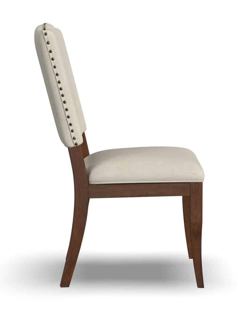 Product Description: Flexsteel W1042-840 Bellevue Pair of Upholstered Dining Chairs - Elegant yet practical, the Bellevue upholstered dining chair is a true heirloom, with everlasting utility in a graceful package. A stately silhouette in a rich whiskey brown finish with an elegant nail trim, this piece will house all your odds and ends and bring some opulence to your everyday life. Perched on classic taper legs, the Bellevue upholster dining chair is enduring style in a functional, everyday package.