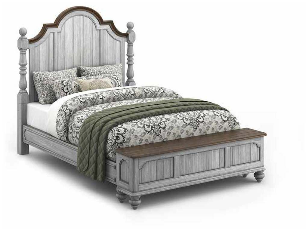 Product Description: Flexsteel W1047-90QS Plymouth Queen Storage Bed - Drift off to sleep in the cozy, cottage-style Plymouth Poster Storage Bed, featuring charming, paneled accents and detailed molding on the headboard and footboard. Available in Queen size as well as King and California King sizes, this bed is crafted with high-quality construction, ensuring it can be enjoyed for generations to come. The graceful, scalloped profile of the headboard and intricately carved posts make this bed a statement piece. The paneled footboard offers concealed, roomy storage for blankets, pillows or clothes, and provides a convenient place to perch while you put on your shoes. Finished in a distressed graywash highlighted by contrasting medium brown accents, the Plymouth poster bed brings warmth and character to any bedroom.