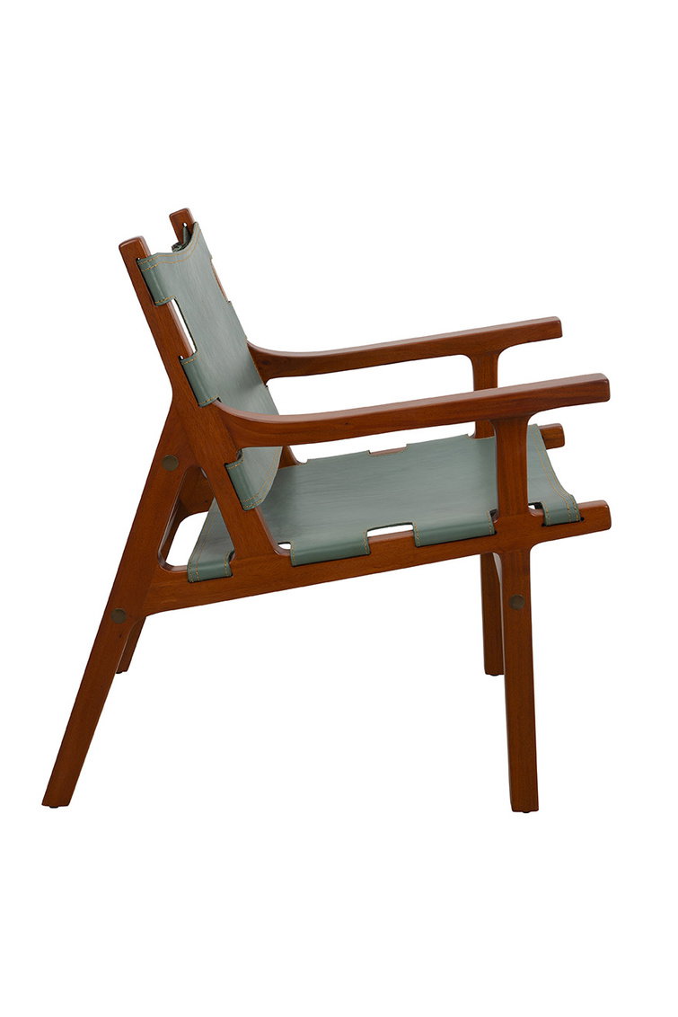 Product Description: Furniture Classics 12-01 Pierce Chair - Introducing the Pierce Chair, where smooth brown wood meets the calming hue of sea green leather. This chair exudes an earthy vibe, perfect for bringing a touch of nature indoors. Its slick design makes it an ideal addition to a modern space, while its charming colors make it a suitable option for more eclectic interiors as well.