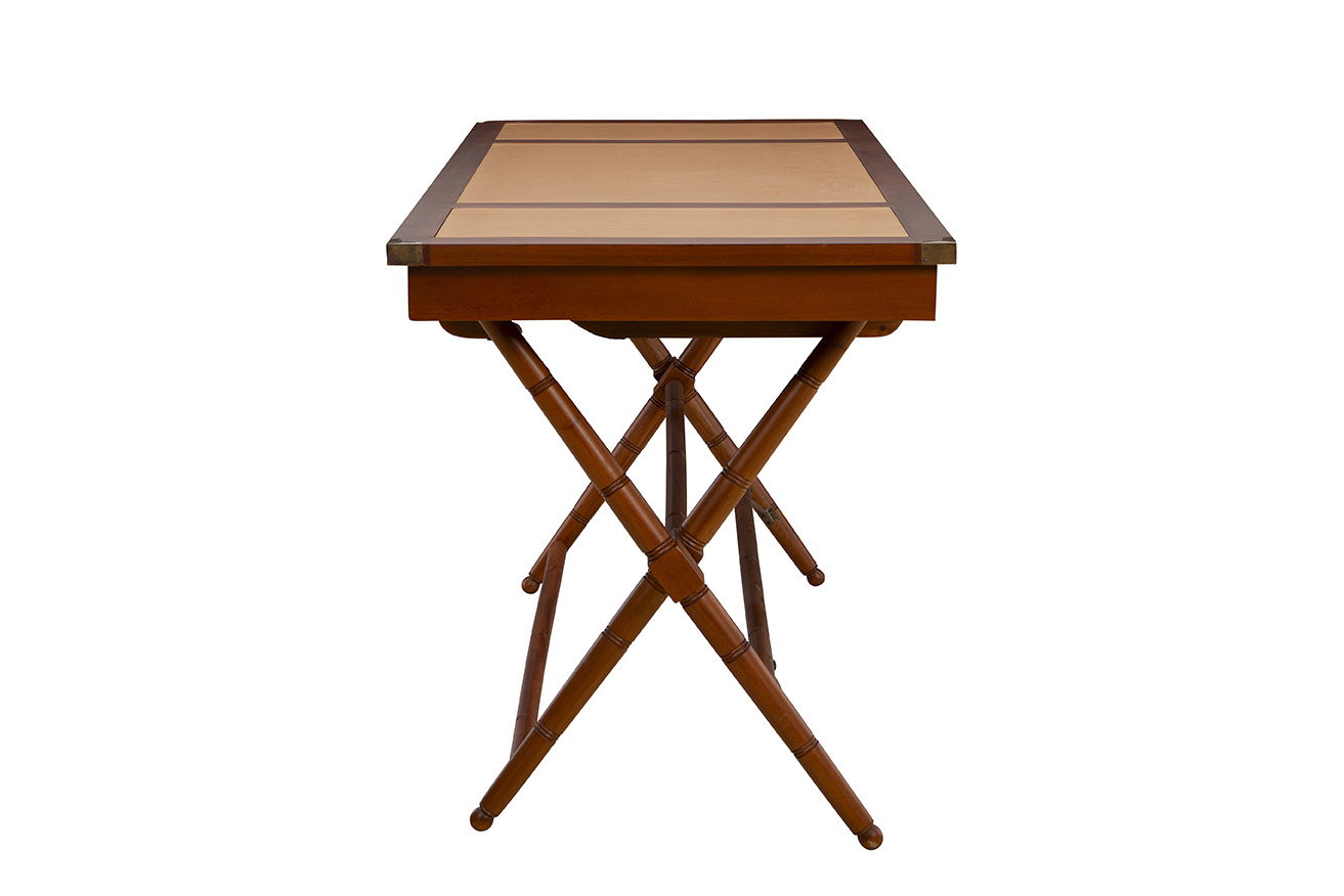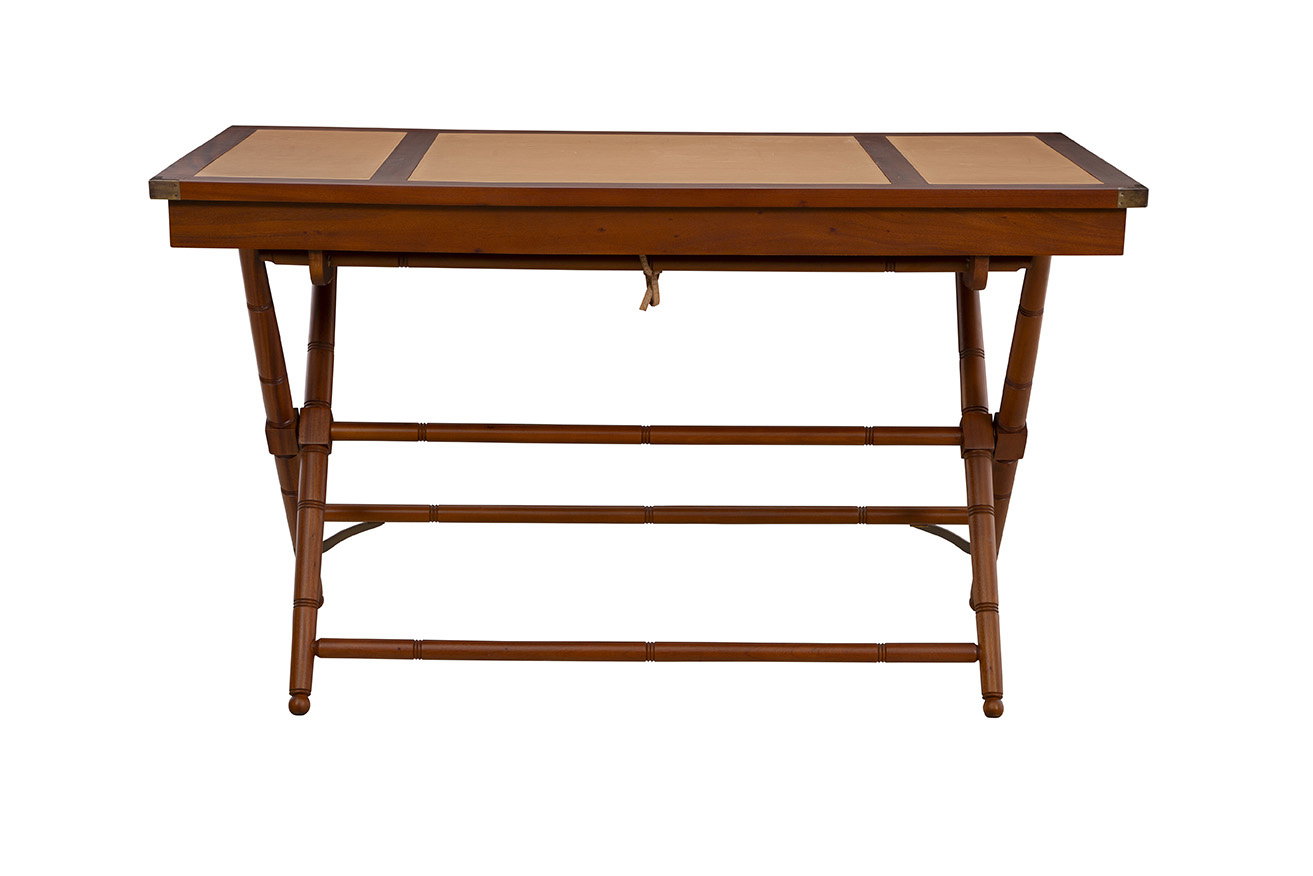 Product Description: Furniture Classics 12-07 San Mortise Desk - Crafted from rich brown wood, the San Mortise Desk elegant writing desk features luxurious leather and metal accents that enhance its timeless appeal. The desk's innovative design allows it to be easily folded up, making it an ideal space-saving solution for any room. Whether you're penning your next novel or managing daily tasks, the San Mortise Desk offers the perfect blend of practicality and charm.