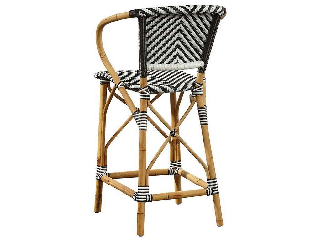 Product Description: Furniture Classics 18-12 Pearl Bar Stool - Made of natural rattan with a woven seat design. Features a curved backrest for comfort and a footrest for support. Suitable for kitchen islands or bar counters. Stool height is 30 inches.