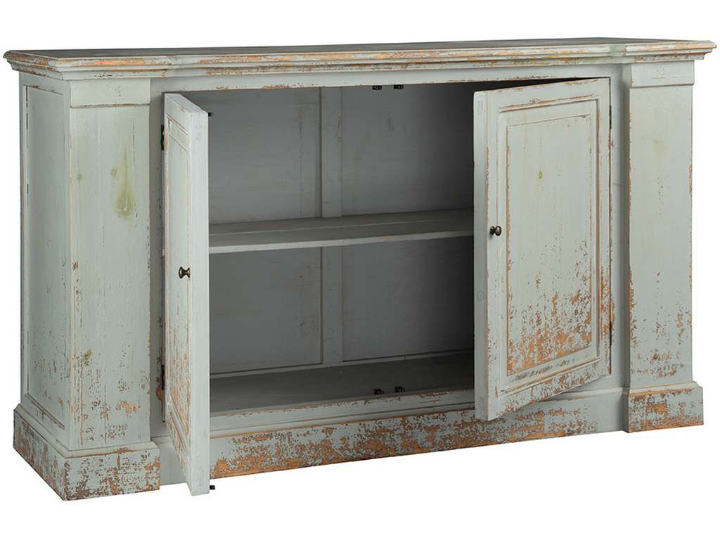 Product Description: Furniture Classics 20-121 Stratus Sideboard - Generously scaled to hold all your entertaining supplies, this reclaimed pine cabinet has a fixed shelf behind the large framed doors. The ravages of time are lovingly replicated by the soft gray blue paint.