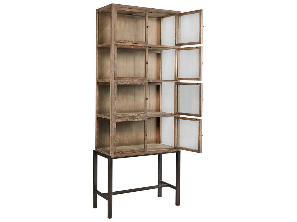 Product Description: Furniture Classics 20-191 Veso Display Cabinet - Perched upon a simple metal base, this reclaimed oak display cabinet features four pairs of wood framed glass doors, perfect for displaying books and treasures. Stately alone, and even more wonderful used in pairs. Looks even better paired with the double cabinet, 20-150, the media console, 20-227, and the desk, 20-151.