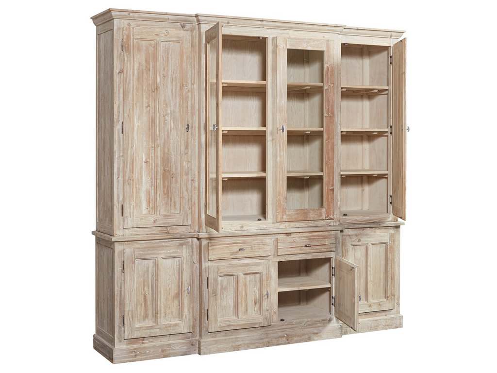 Product Description: Furniture Classics 20-363 Wainscott Display Cabinet - What an amazing piece of cabinetry with architectural detailing! Perfect as the anchor for your gathering room, this handsome piece is crafted of reclaimed pine, with a soft whitewash finish which allows the natural distinctive grain to shine through. There are three fixed shelves behind the tempered glass doors, and in the end cabinets, while the base cabinets have one shelf. Two useful drawers are included in the center cabinet, and are perfect for decks of cards and discarded reading glasses.
