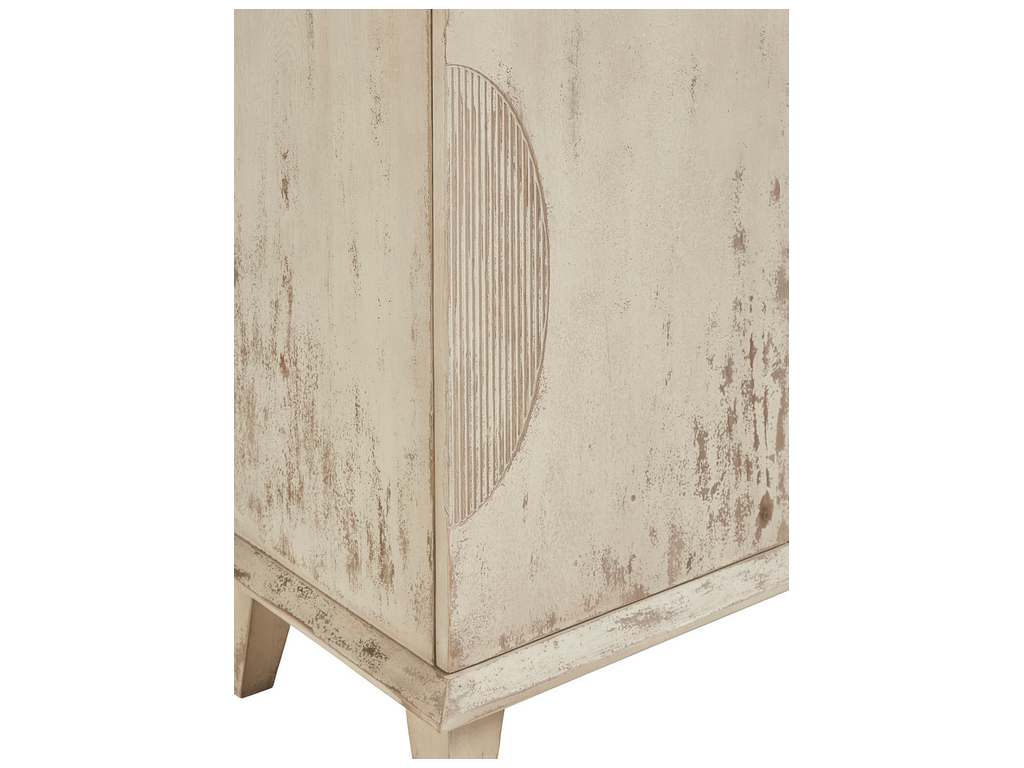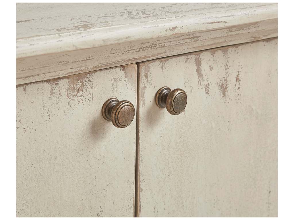 Product Description: Furniture Classics 20-404 Sanibel Dove Sideboard - The flared legs, base and top add a touch of lightness to this simple, reclaimed Pine cabinet. The lightly distressed finish is highlighted by the unique routed ovals on the door fronts. Not just pretty, this cabinet offers tons of practical storage with a fixed shelf behind each pair of doors.