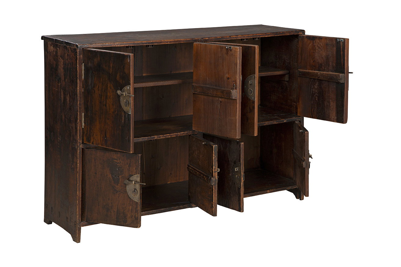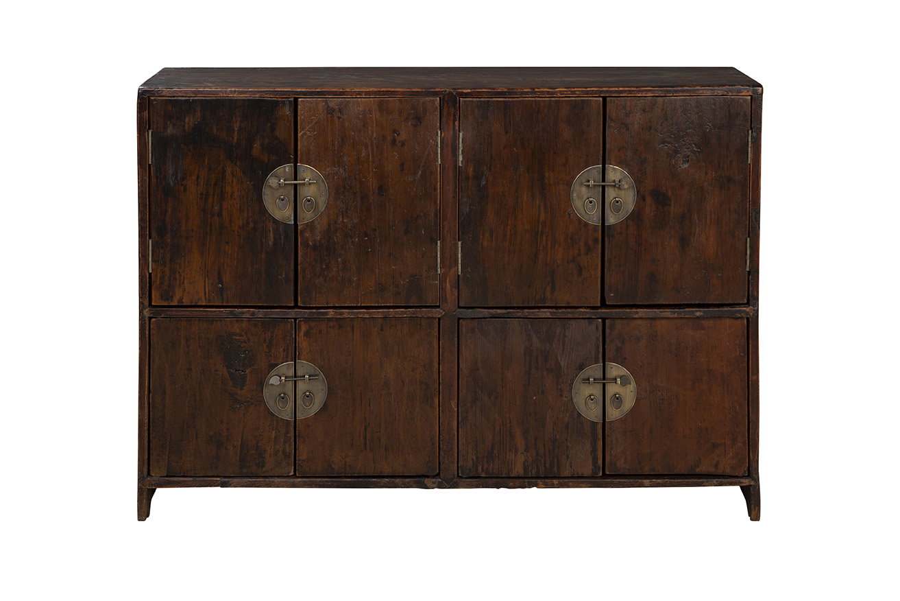 Product Description: Furniture Classics 20-551 Farley Antique Cabinet - Immerse your space in vintage charm with the timeless Farley Antique Cabinet. This antique marvel, crafted from dark wood exuding texture and character, adds a touch of old-world allure to any room. The exterior, cleverly divided into quarters akin to individual cabinet doors, offers a distinctive and charming appeal. Inside, discover spacious functionality with three long shelves for your storage needs. The defining feature of this piece lies in the four metal hardware additions, closing each quarter independently, showcasing a truly antique aesthetic.