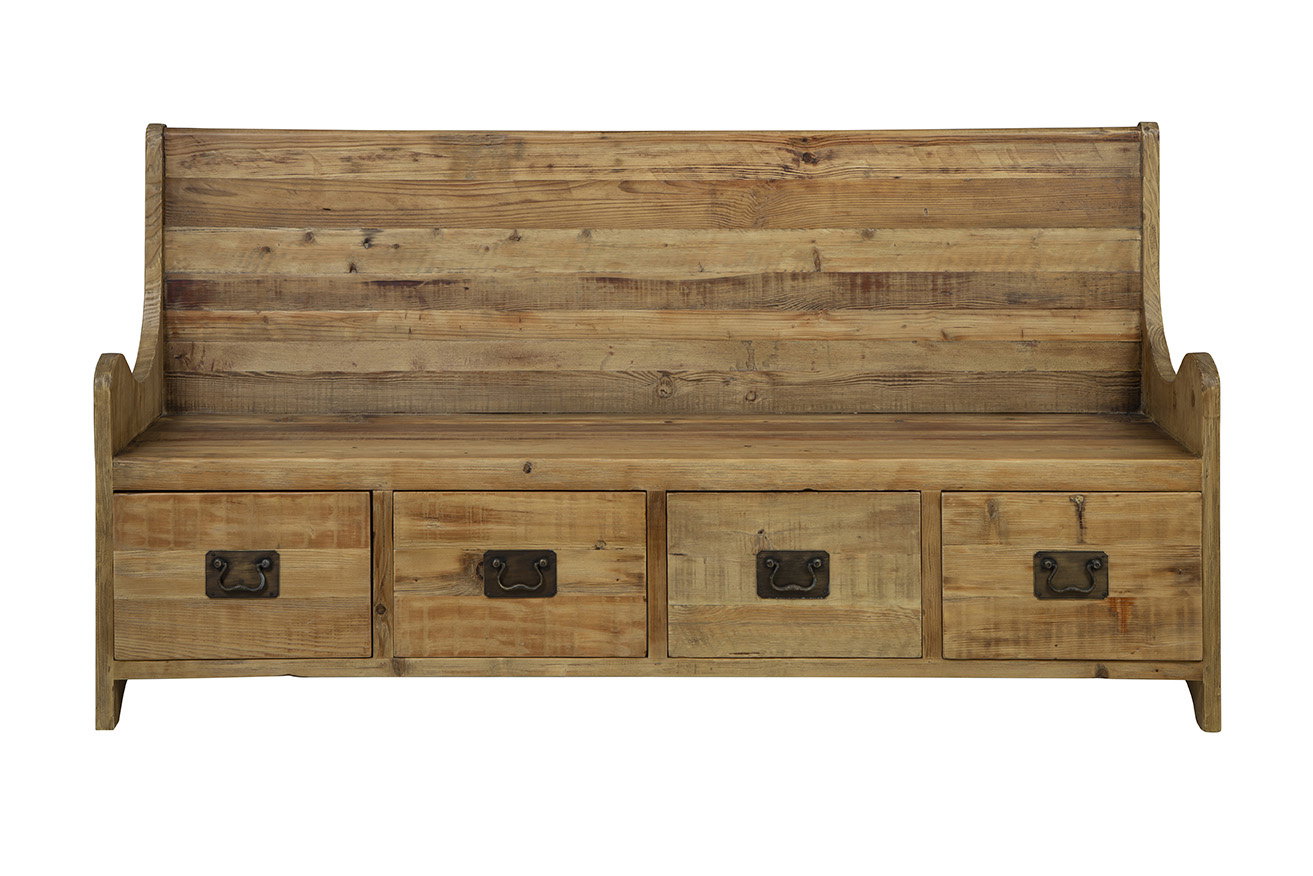 Product Description: Furniture Classics 20-554 DeLine Storage Bench - Immerse your space in the timeless charm of the DeLine Storage Bench - a piece that brings an antique farmhouse vibe with its multi-toned natural wood finish. This versatile bench offers both style and functionality, featuring four spacious drawers that make it a coveted addition to any room. The vintage metal hardware adorning each drawer adds to the overall aesthetic, creating a cohesive and vintage look. Additionally, the bench provides the option to add a cushion for extra comfort, blending practicality with comfort seamlessly. Whether used as a standalone piece to elevate your decor or placed against a wall paired with a dining table, the DeLine Storage Bench is a versatile furniture item that adds both style and storage solutions to your space.