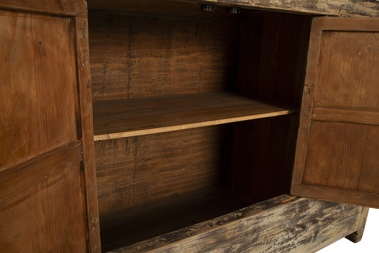 Product Description: Furniture Classics 20-558 Merigold Buffet - Constructed from reclaimed pine wood with a distressed finish. Offers ample storage space with three drawers and two cabinets. Perfect for dining rooms or living areas, adding a rustic touch.