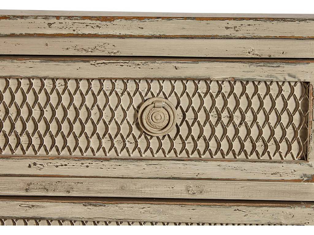 Product Description: Furniture Classics 2846AD33 Large Field Chest - Standing on its tip toes, this well scaled chest has turned legs which lead your eye up to the rounded pilasters. The three generous drawers have an eye catching detail created by floating metal mesh just above the drawer fronts to create a subtle changing pattern which makes you do a double take. Soft cream and brown tones blend to create a finish which plays well with others.