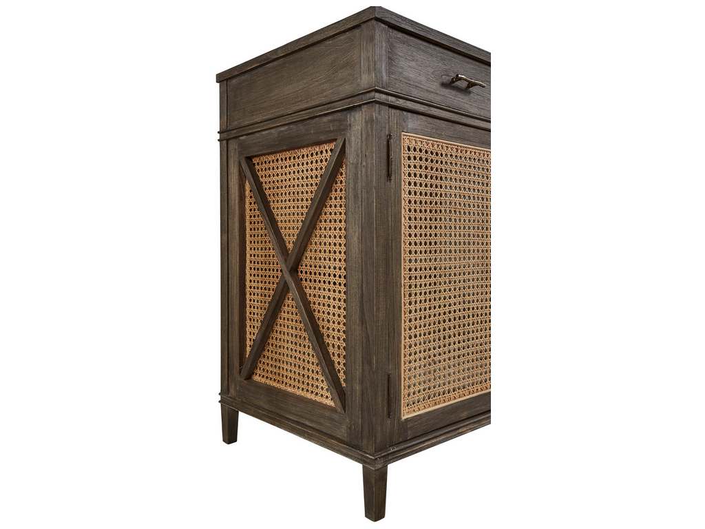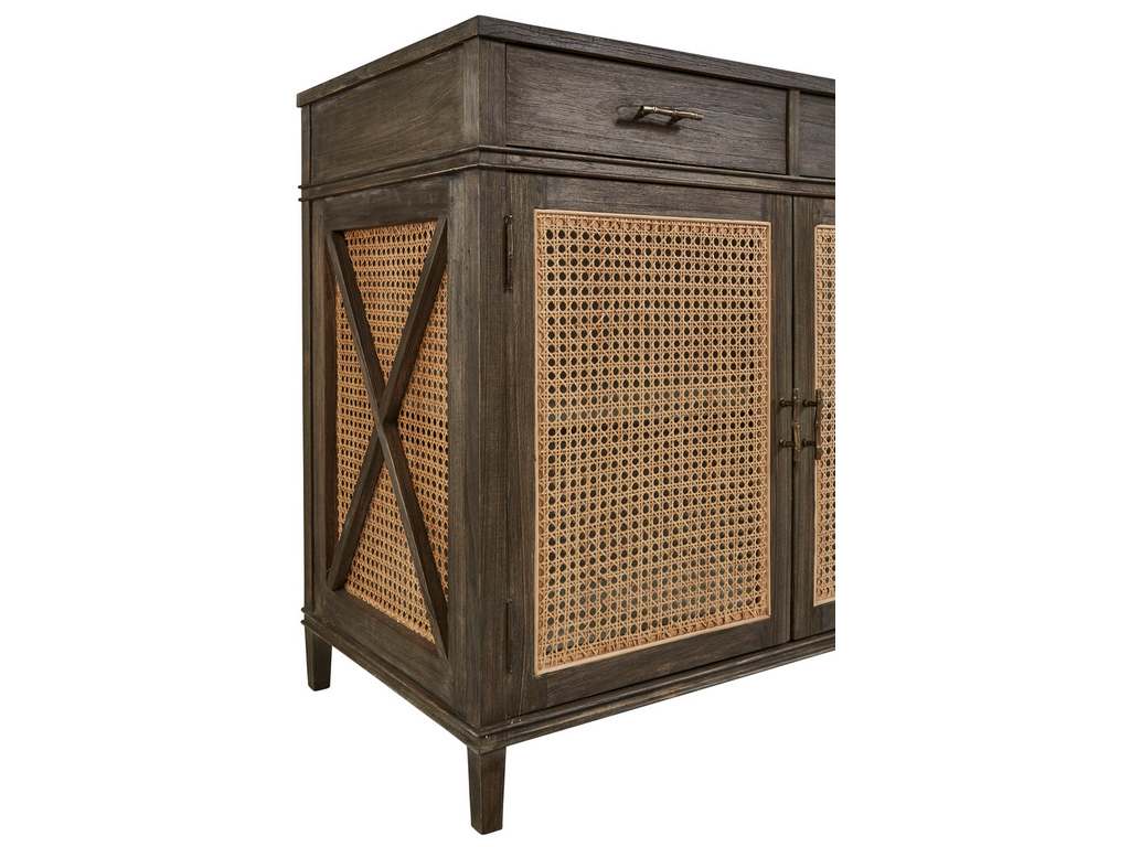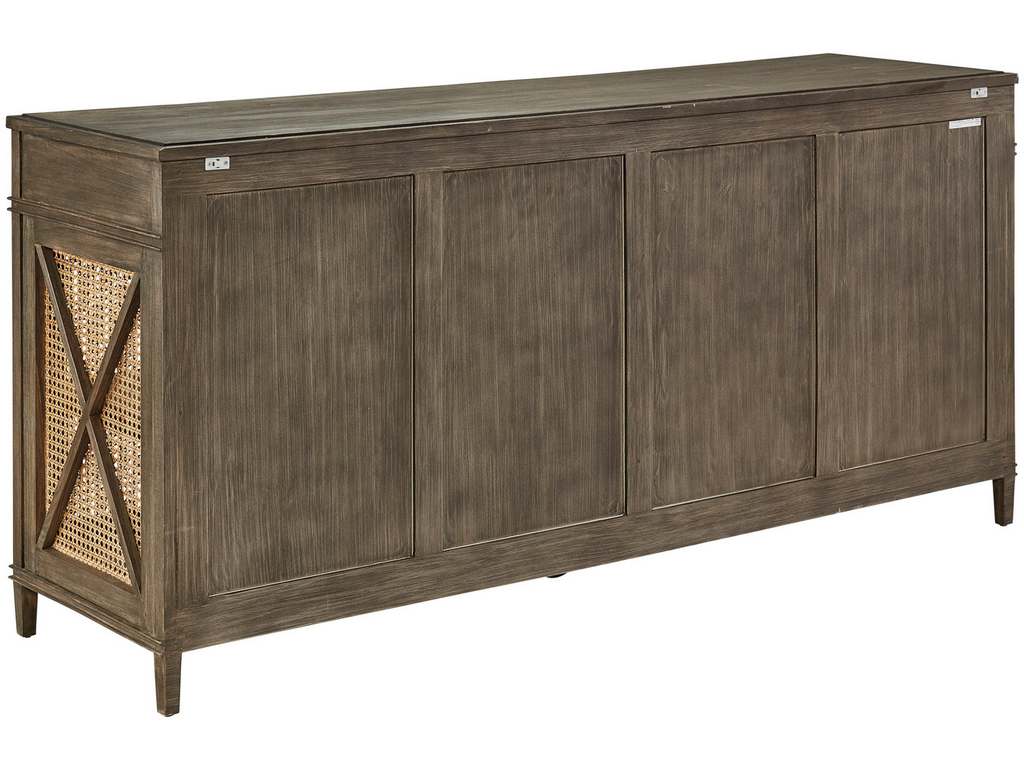 Product Description: Furniture Classics 32028 Cambridge Buffet - Contrast is often the basis for visual interest, and this buffet is a prime example of this maxim. The simplified neo-classical design is enlivened by the use of natural open caning on the doors and sides of this charcoal toned cabinet. The interior features shelves, making this a practical and stylish choice when storage is required, and is painted a light color to emphasize the airy nature of the weaving. Perfect for a dining room, this handsome cabinet would also work beautifully as a media console.