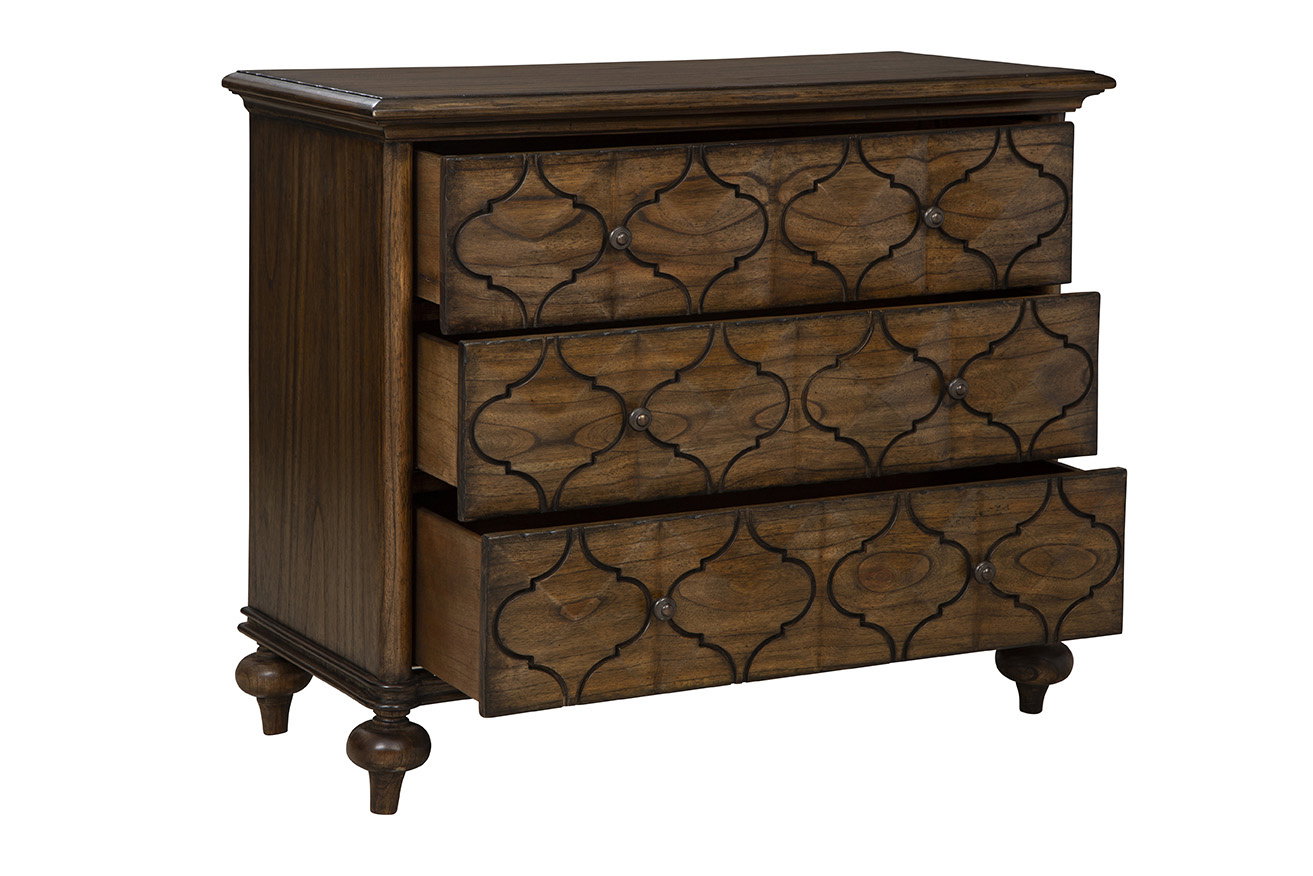 Product Description: Furniture Classics 32083AC99 Arthur Chest - The Arthur Chest exudes a traditional charm with its classic design. Crafted from solid dark brown wood, this chest showcases rich wood hues that lend a sense of sophistication to any space. Featuring three spacious drawers, it offers ample storage for various items. The drawers stand out with intricate and eye-catching wood carvings, adding a touch of elegance and character to this distinguished piece of furniture.