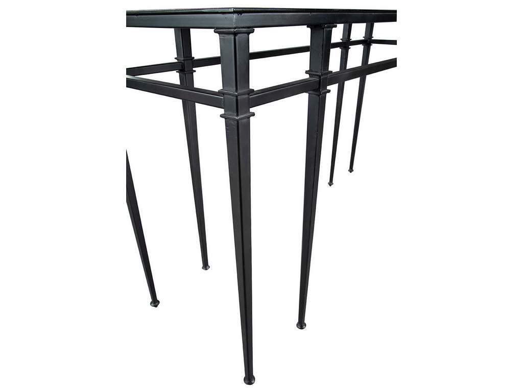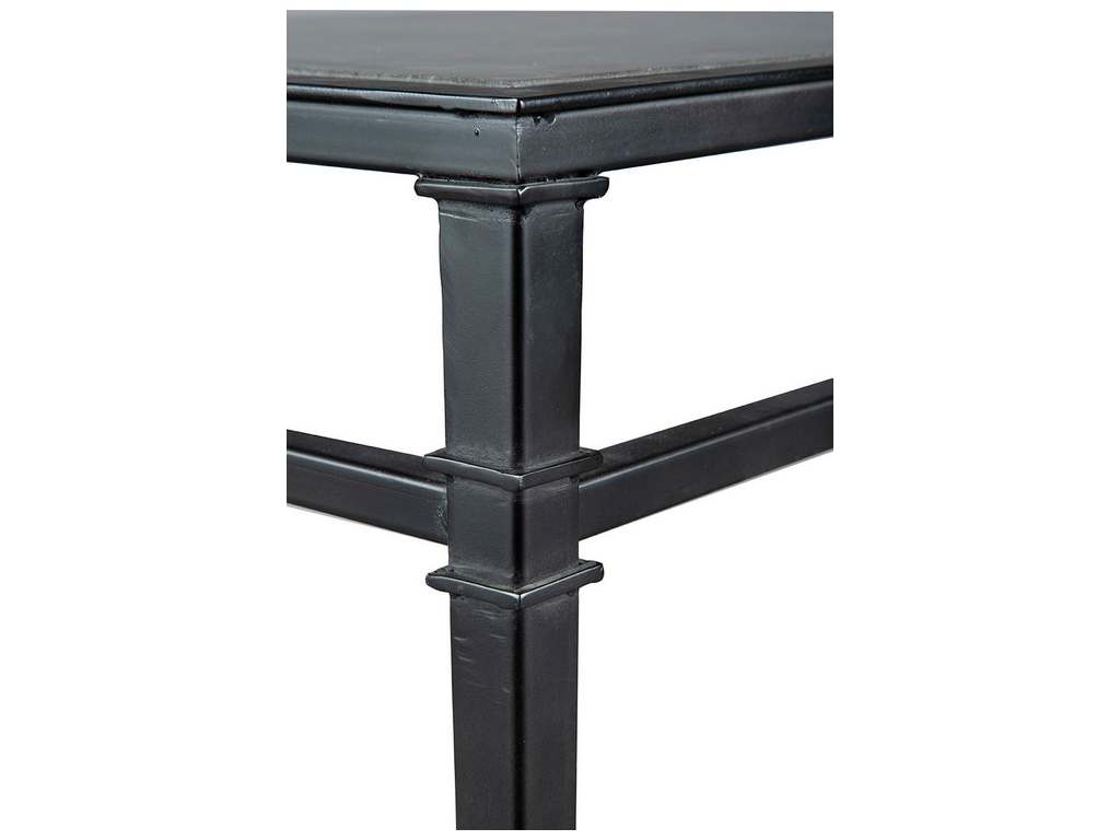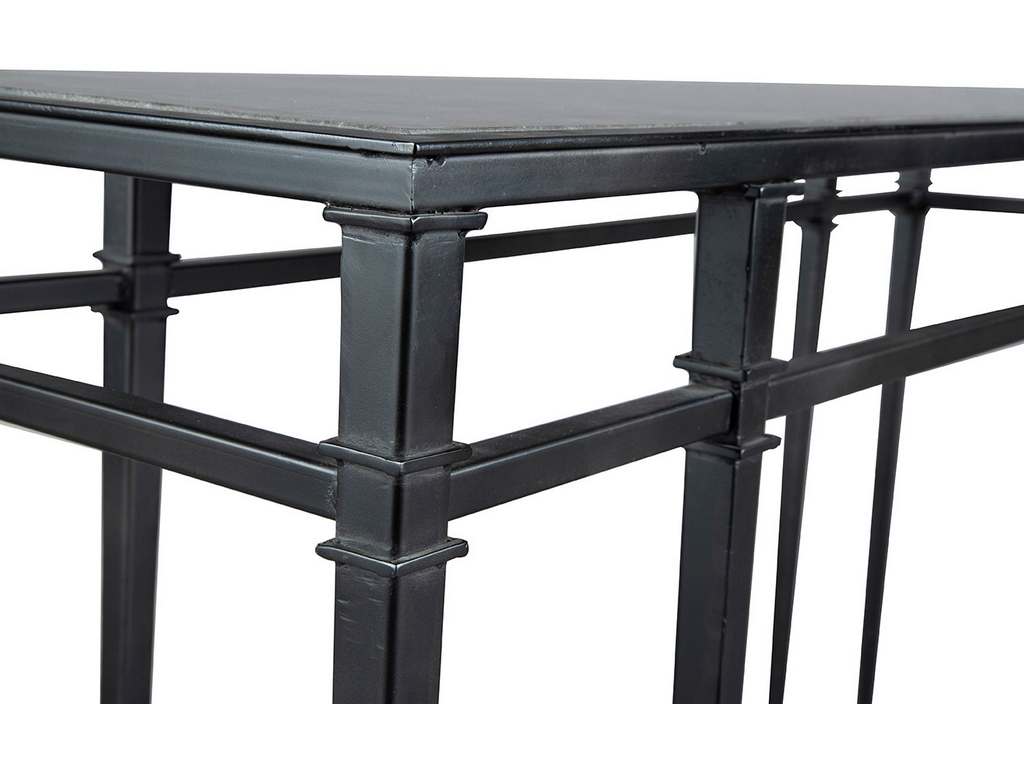 Product Description: Furniture Classics 40-222 Margaret Console - Graciously scaled, yet visually delicate, this metal console takes its cues from the Sheraton style. The thin, tapered legs feature detailing at the top and feet which call to mind finely wrought inlaid accents. The top is crafted from bluestone which adds another contemporary touch to this lovely console firmly rooted in historical style. What a beauty to enhance any space!