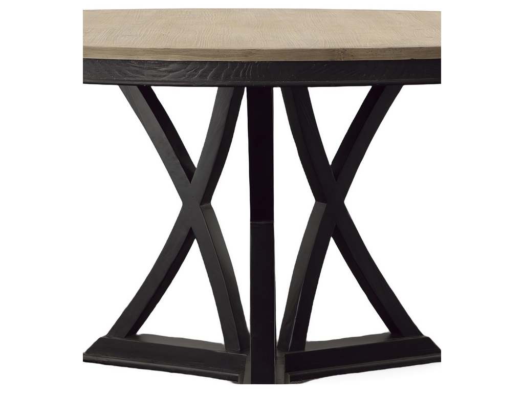 Product Description: Furniture Classics 40-242 Polk Dining Table - With seating enough for happy family meals, plus a friend or two, this unique pedestal dining table features a unique arched tripod base. The base and apron are painted a satin black, while the solid pine top is left in its softly natural tones. To make it really family friendly, the top is finished with a clear coat finish.
