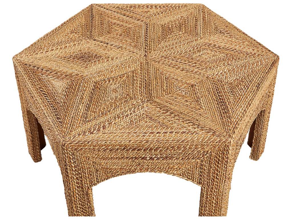 Product Description: Furniture Classics 42860 Marrakesh Cocktail Table - Boho chic and slightly Moroccan in feeling, this unique table is crafted from tightly woven and coiled dried natural banana fronds which is very sturdy. The hexagon design provides inspiration for the graphically arresting star design on the table top. What a unique way to bring texture into your design!