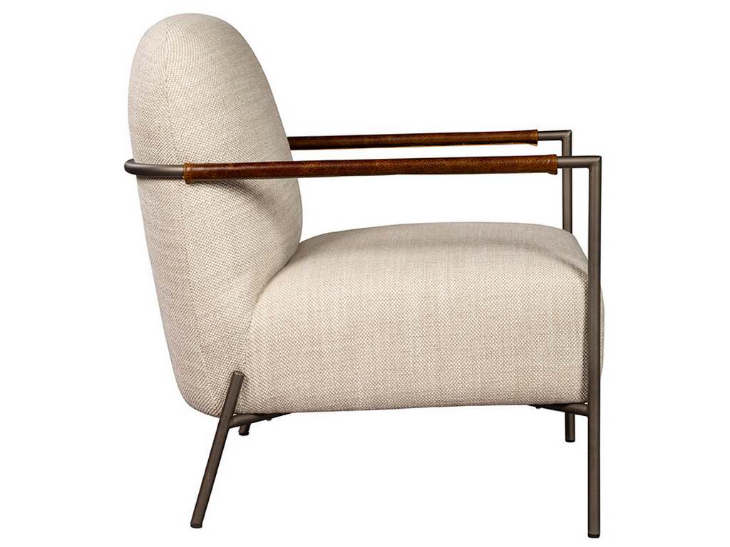 Product Description: Furniture Classics 50-07 Phelan Occasional Chair - The tubular metal frame of this mid-century chair is a soft grey which contrasts nicely with the neutral woven performance upholstery. Leather wrapped arms are yours to choose, as they are fastened with Velcro, but they do provide another bit of visual interest to this simply handsome chair.