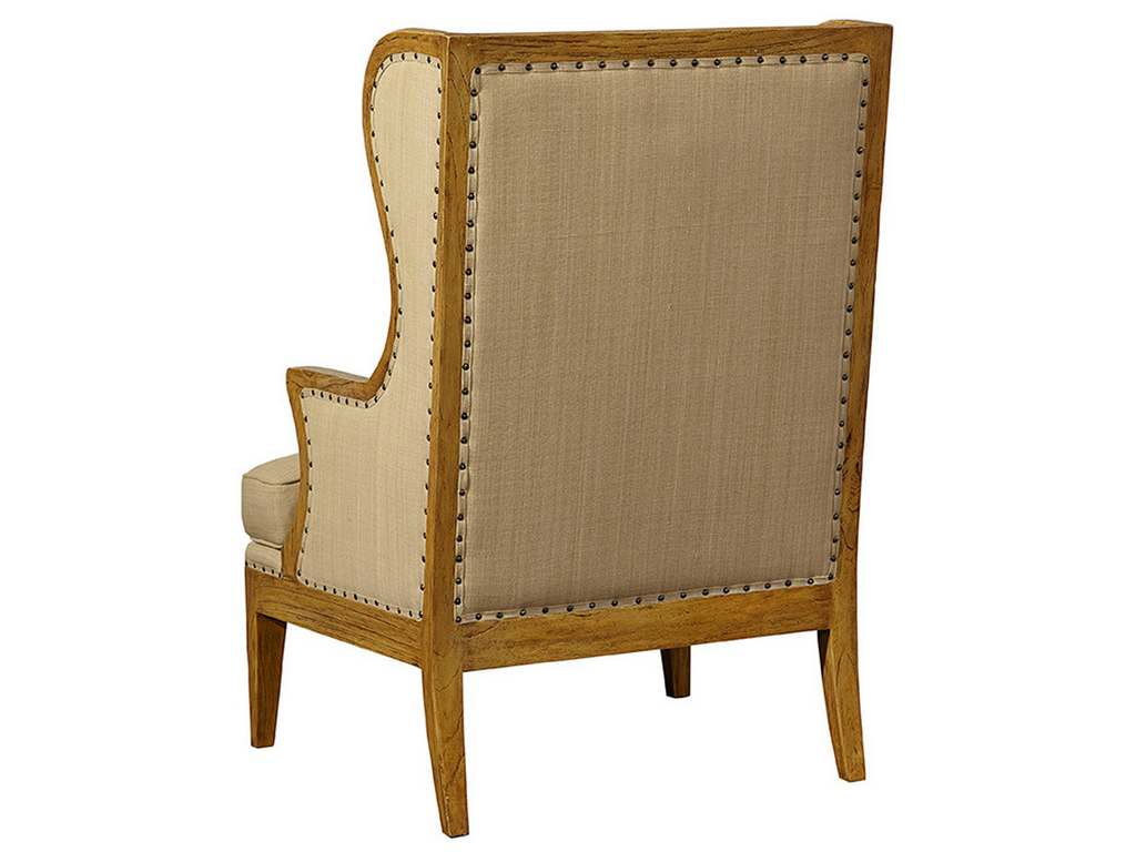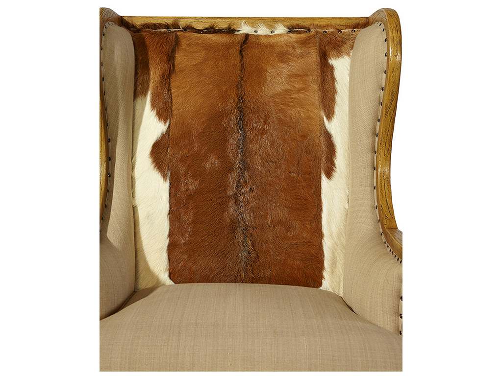 Product Description: Furniture Classics 51577 Billings Wing Chair - Capitalizing on the use of hides in high style clothing, this unique oak framed wing chair features a hair on hide inside back, which contrasts beautifully with natural linen. The sweeping lines of the wings culminate in delicately scaled arms and are emphasized by the use of nail head trim.