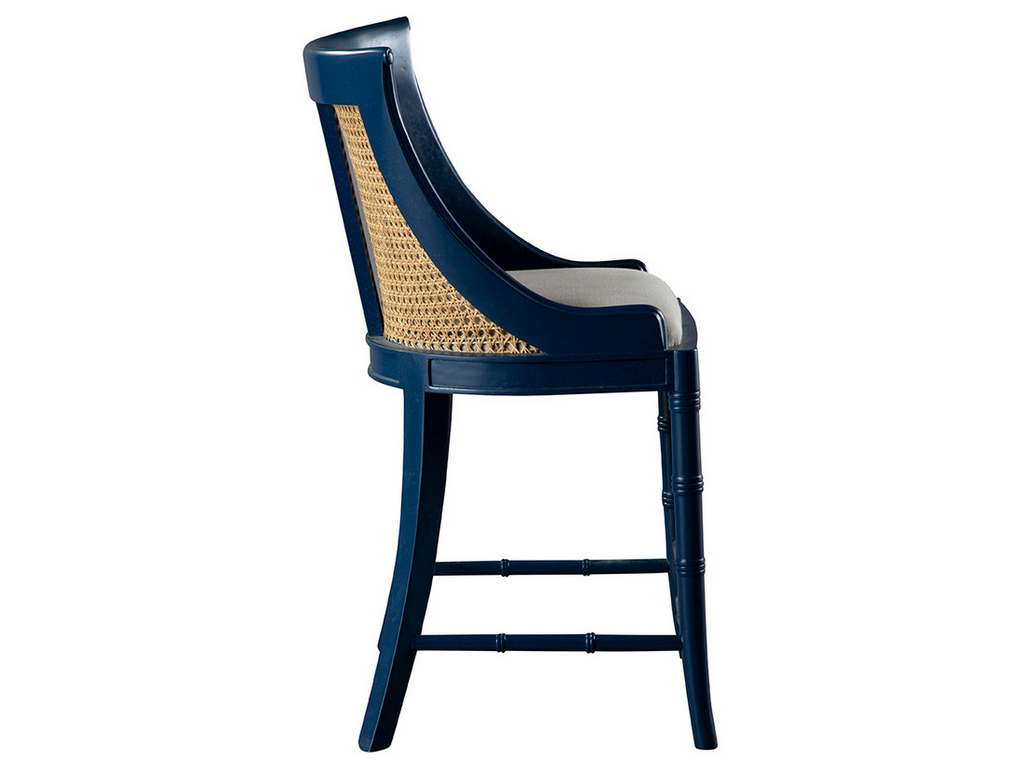 Product Description: Furniture Classics 51856AZ2 Spoonback Counter Stool - This graceful stool is sturdily crafted of solid mahogany, and painted a lovely satin blue. The legs and stretchers feature turned faux bamboo detailing and the back has gleaming honey toned double caning. The seat is easily upholstered to enhance your interior color scheme.