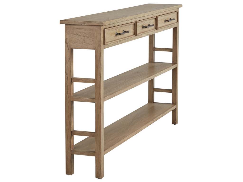 Product Description: Furniture Classics 57714AC37 Caroles Console - When space is at a premium, AND you need stylish function, this is the piece for you! Narrow, and not too long, and possessing three practical drawers for hiding what you want to hide, while two shelves provide display space, this charming console does it all. Stained an on trend taupe, this is a wonderful piece for your front entry, or even to support a flat screen TV. Size DOES matter!