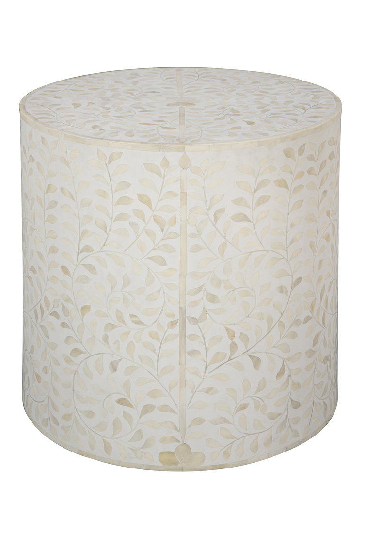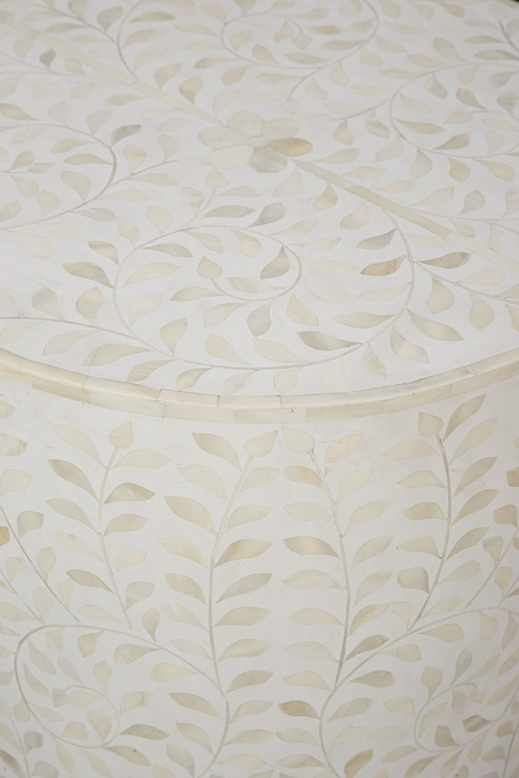 Product Description: Furniture Classics 60-73 White Shell End Table - Introducing the White Shell End Table, a striking piece exuding artistry and sophistication. With intricate shell and bone inlay set in captivating pearl white resin, this table is a standout addition to any room. The overall pearl white color scheme offers subtle elegance while showcasing the beautiful inlay work. Handcrafted with meticulous detail, each table is a unique work of art, highlighting individuality and fine craftsmanship.
