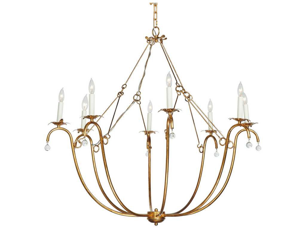 Product Description: Furniture Classics 70-08 Edinburgh Chandelier - A study in delicate scroll work, this elegant eight arm chandelier features unique floral designed candle cups. Each curved arm ends in a delicate crystal drop, which is sure to further enhance the play of light on this beauty. The golden finish is enhanced with hand applied shades of dark and light gold.