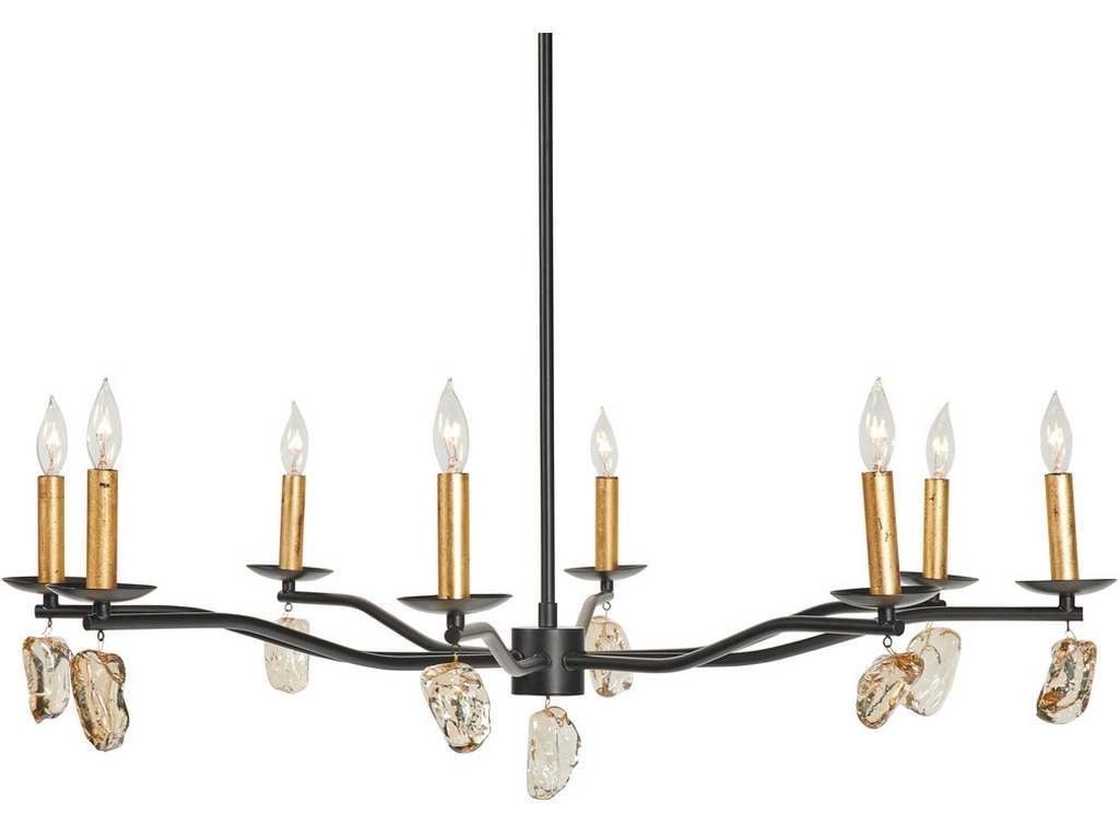 Product Description: Furniture Classics 70-16 Amsterdam Chandelier - This streamlined and deceptively simple chandelier attains a level of sophisticated charm by combining a powder coated matte black finish with gleaming gold accents. The effect is enhanced by the amber hand cast amber glass rock drop which adorn each of the eight arms.