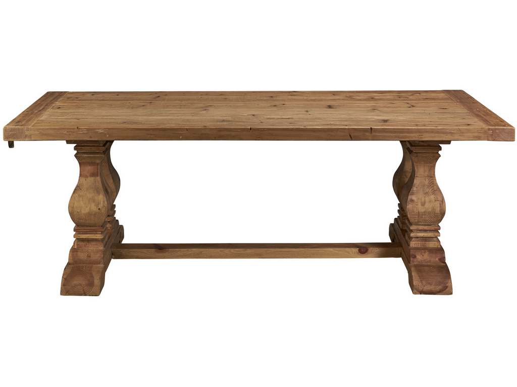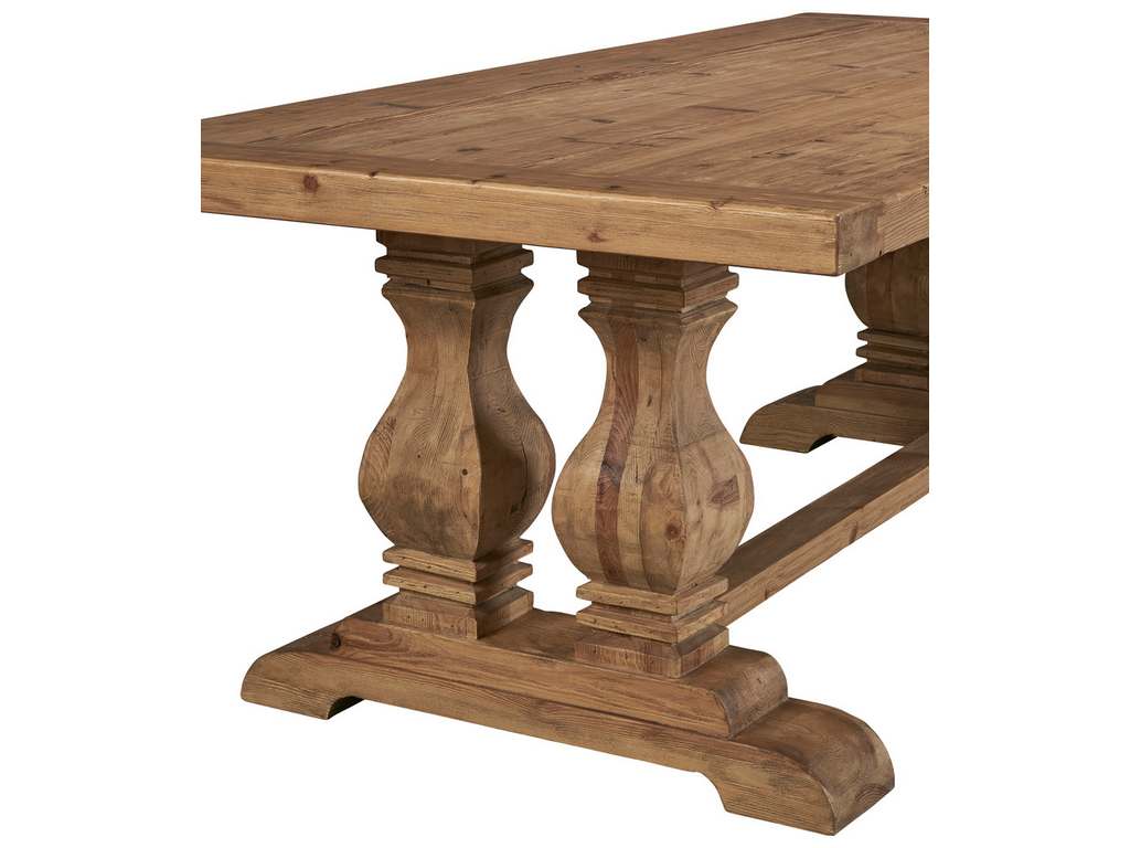 Product Description: Furniture Classics 71090N Manor House Trestle Table - Our Manor House dining table is crafted of unfinished, reclaimed pine timbers on top and features a reclaimed pine baluster trestle base. Ten inch clearance from the pedestal to end of table.